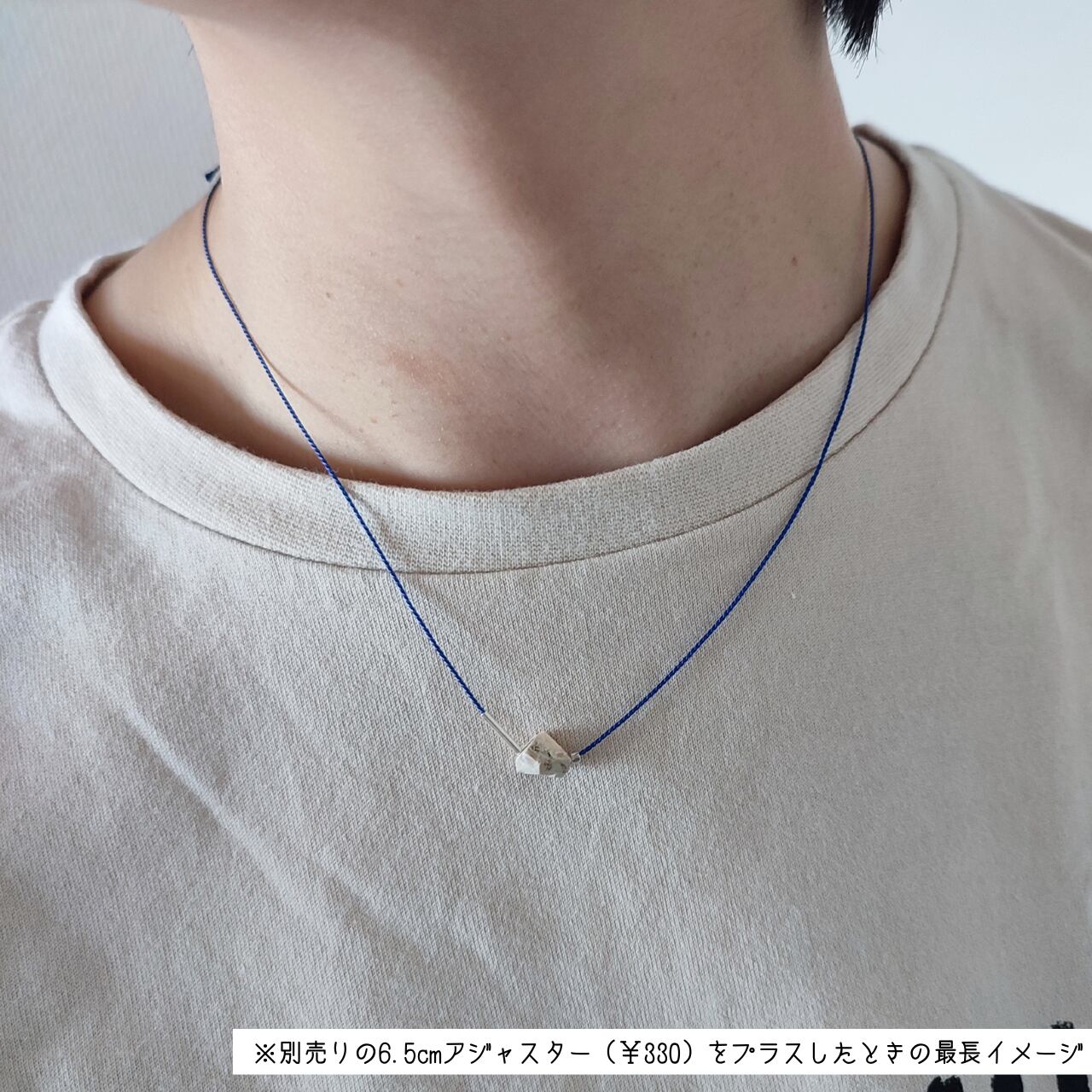 ※絹糸は天然素材の為、水分により縮むことがございます。チェーンのアジャスターを別売り(+¥330)でご用意可能です。(画像12-13枚目参照)