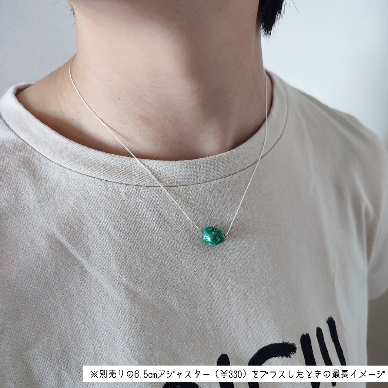 ※絹糸は天然素材の為、水分により縮むことがございます。チェーンのアジャスターを別売り(+¥330)でご用意可能です。(画像15-16枚目参照)