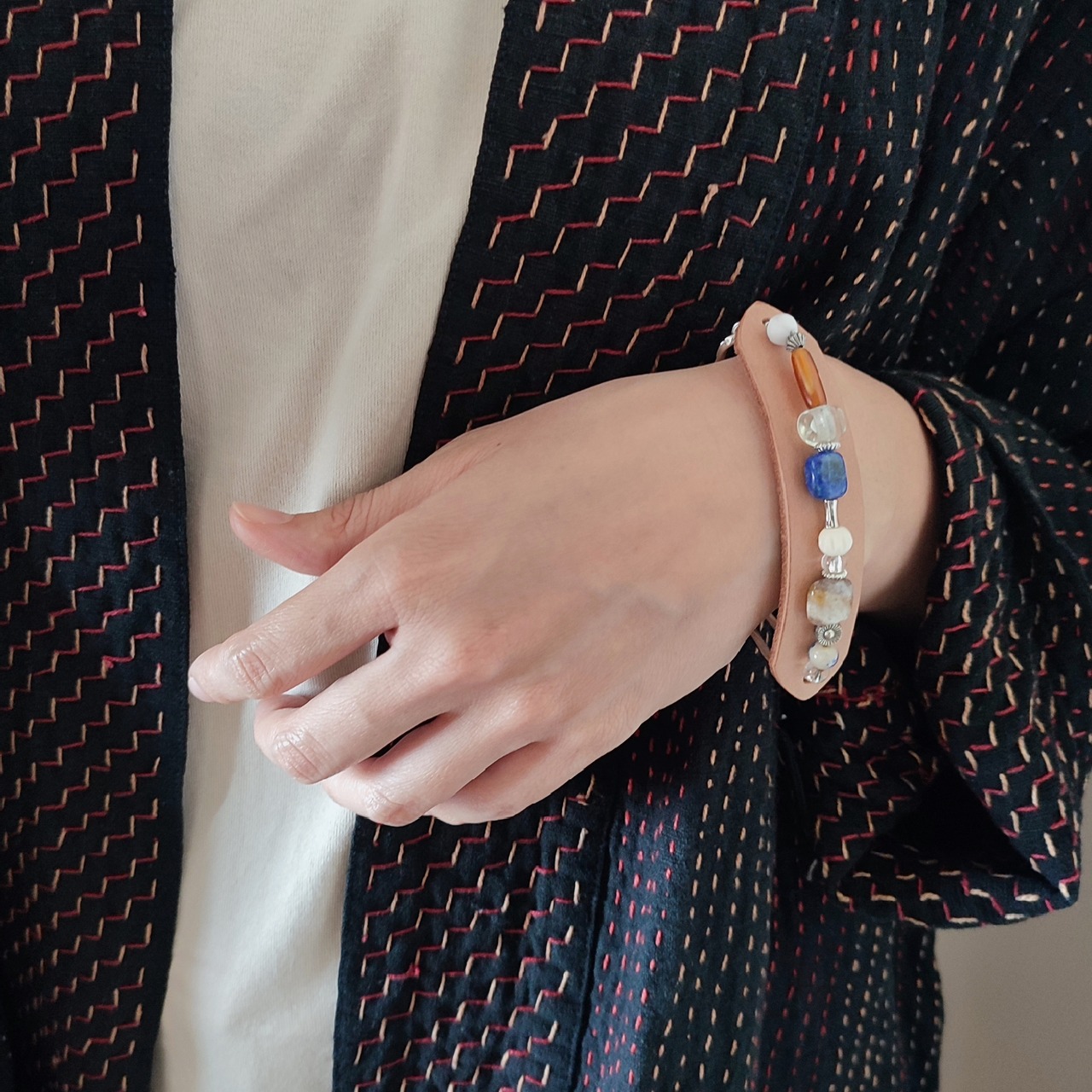 組み合わせる石や天然素材も、それぞれのレザーカラーに合わせて変えました。