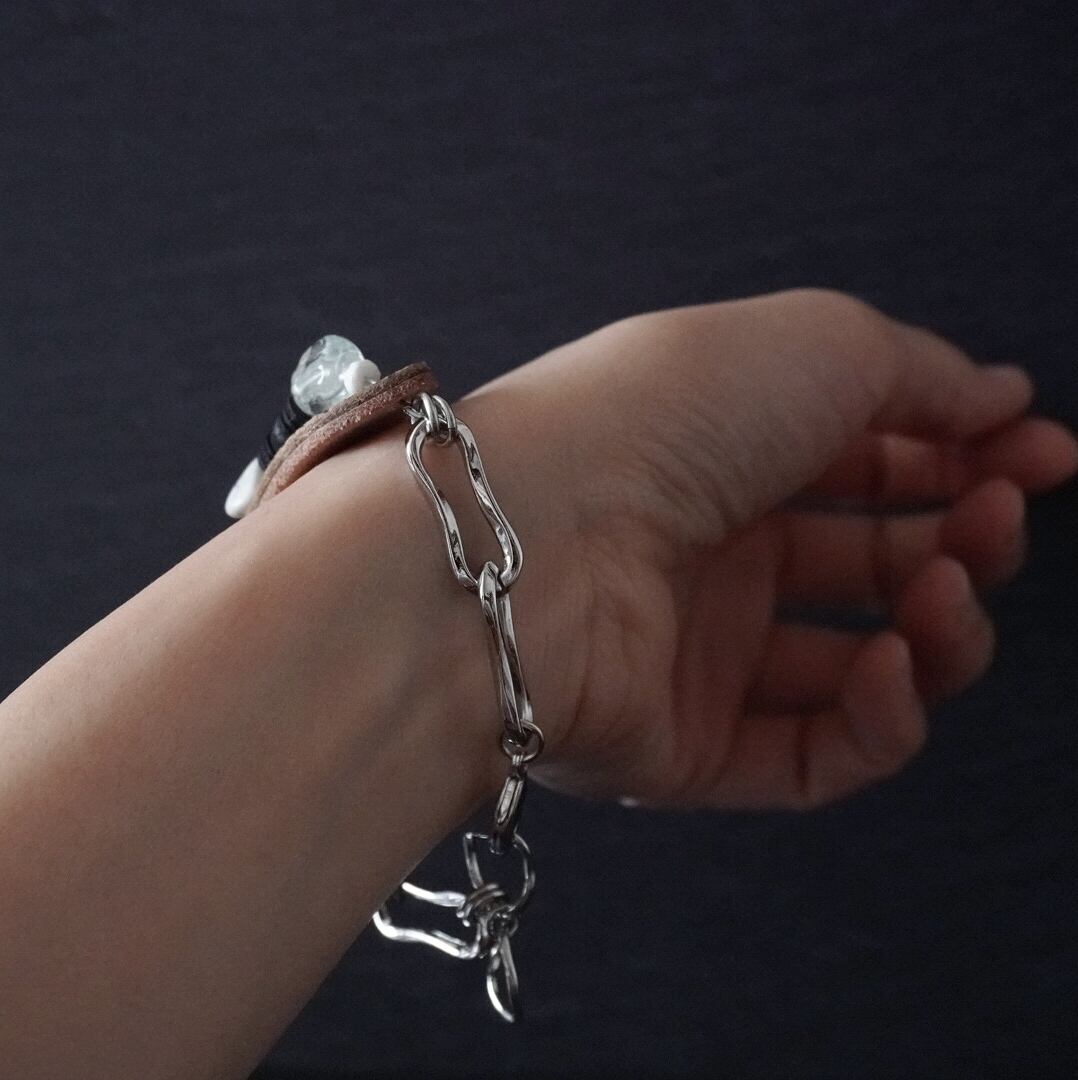 ミニマルでシンプルな革小物を得意とするYONICHIMARUSANとコラボレーションして、ブレスレットを製作しました。