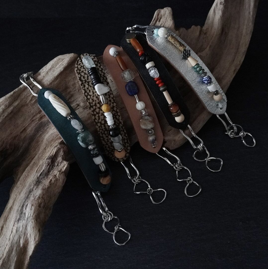 組み合わせる石や天然素材も、それぞれのレザーカラーに合わせて変えました。