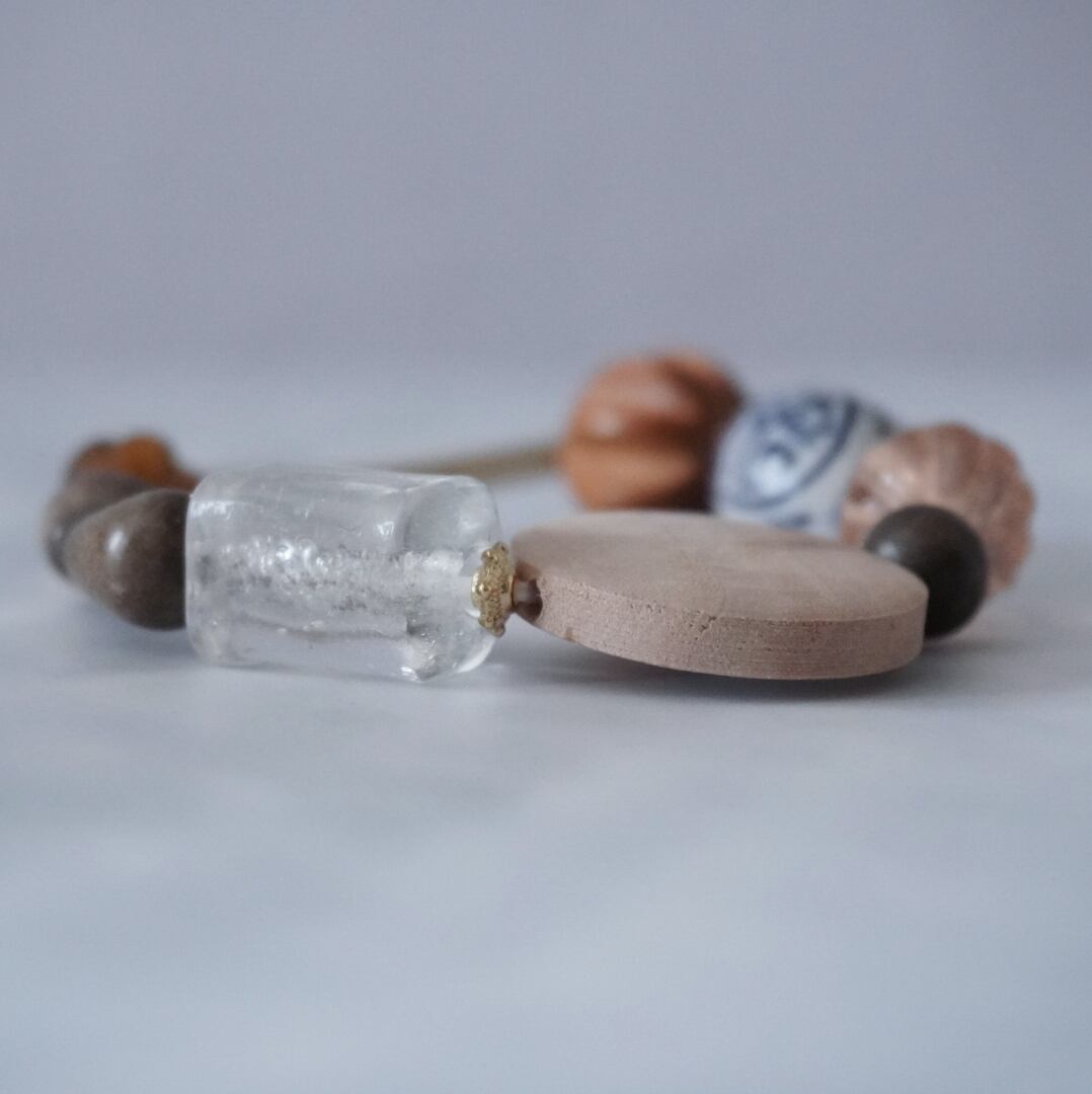 ゆらぎのある質感のガラスや、手描きの陶器ビーズ