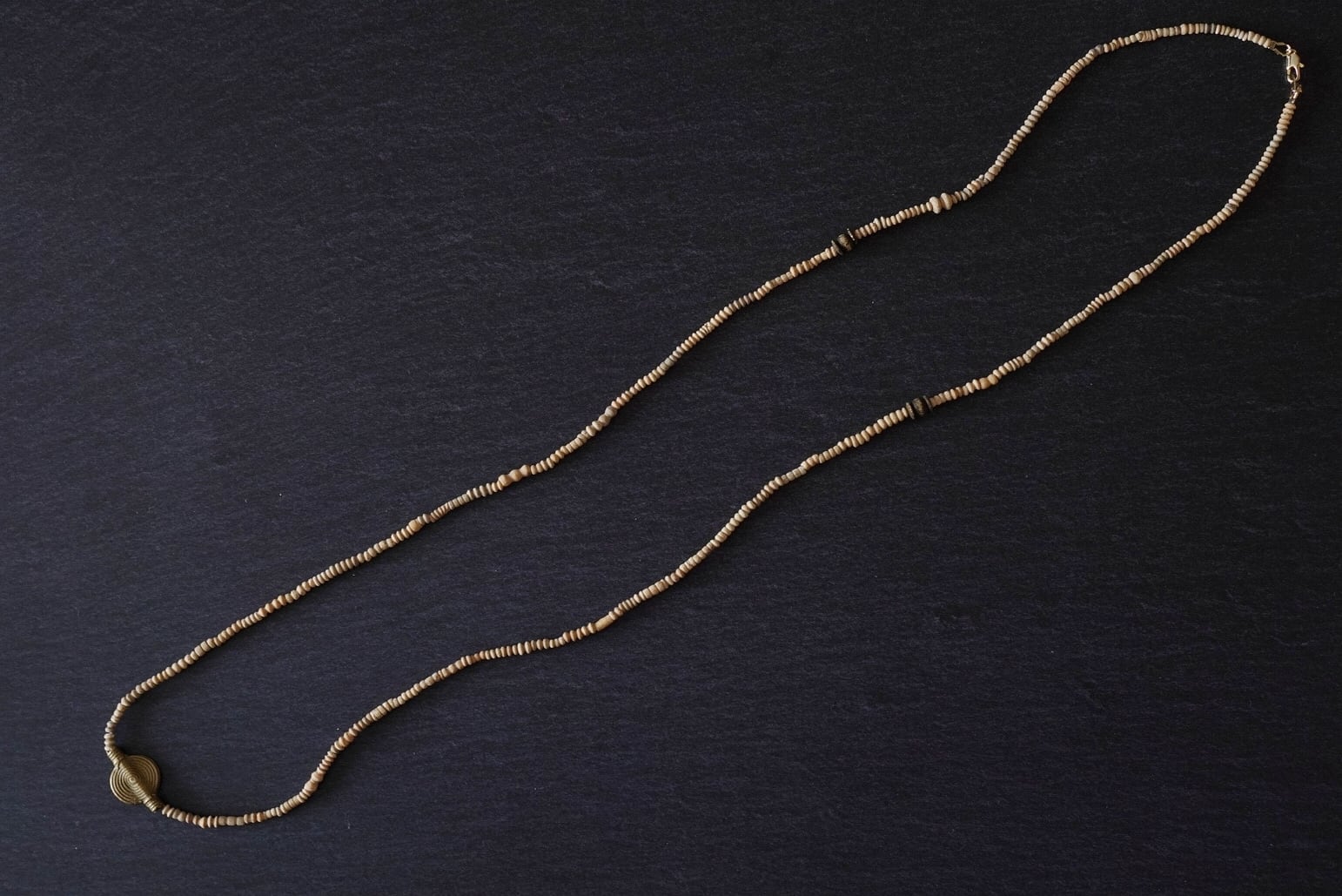 いびつなベージュのビーズは素焼きのテラコッタ。こちらもアフリカのものです。