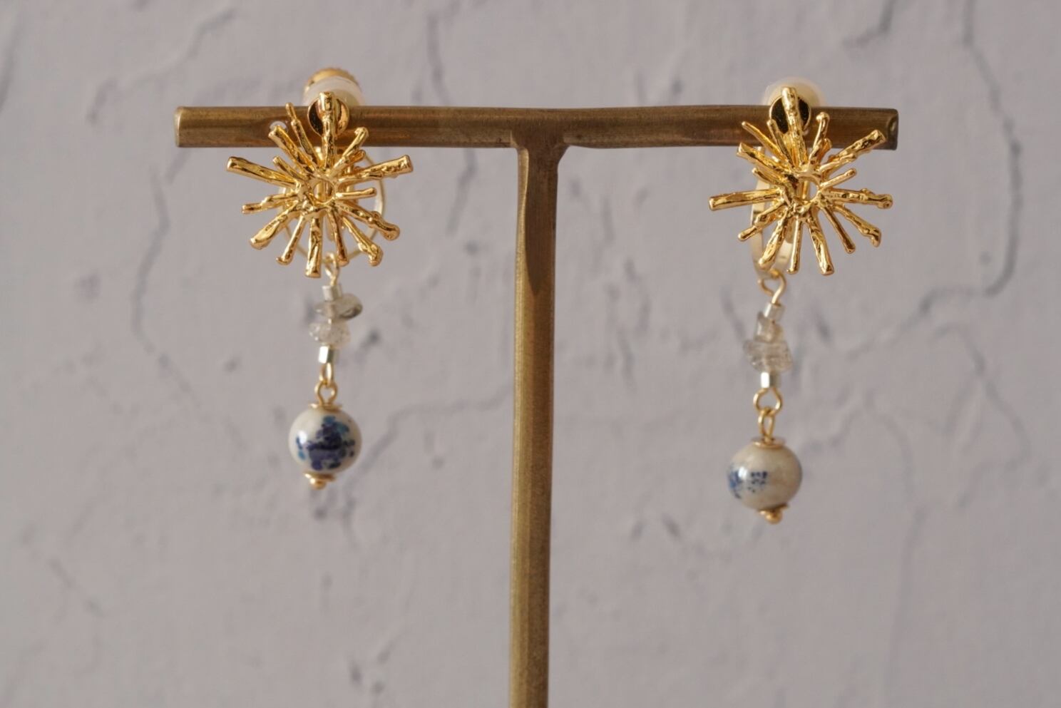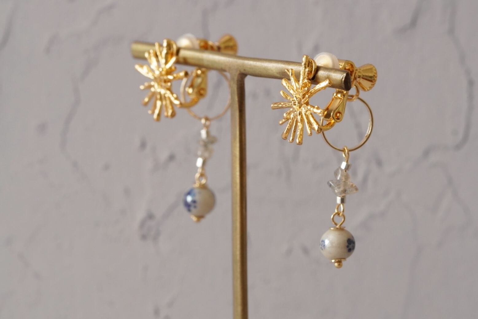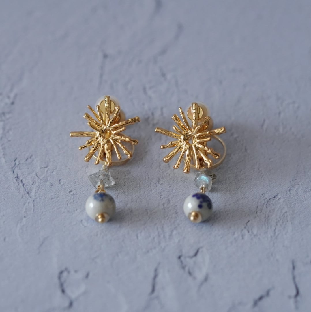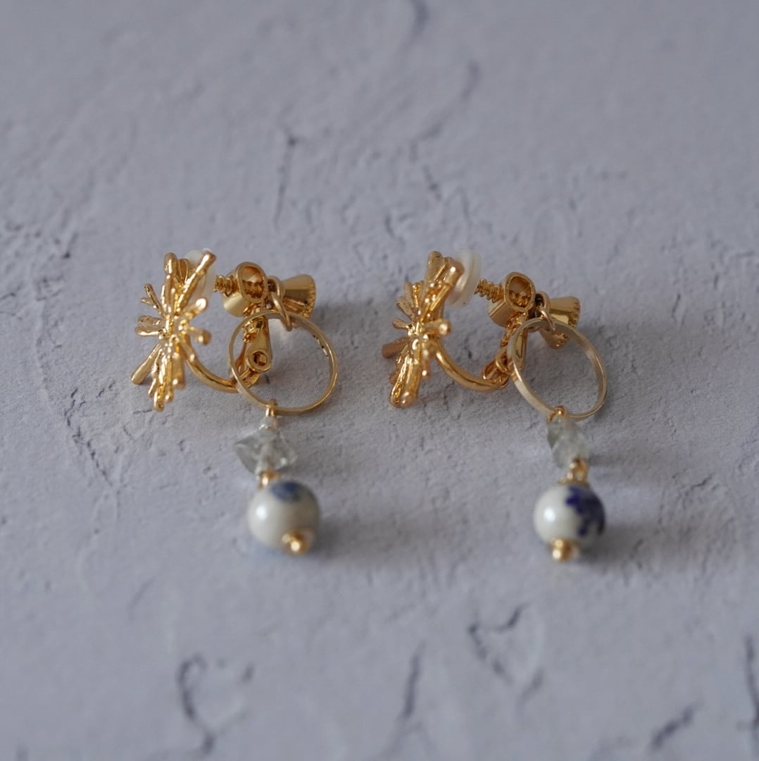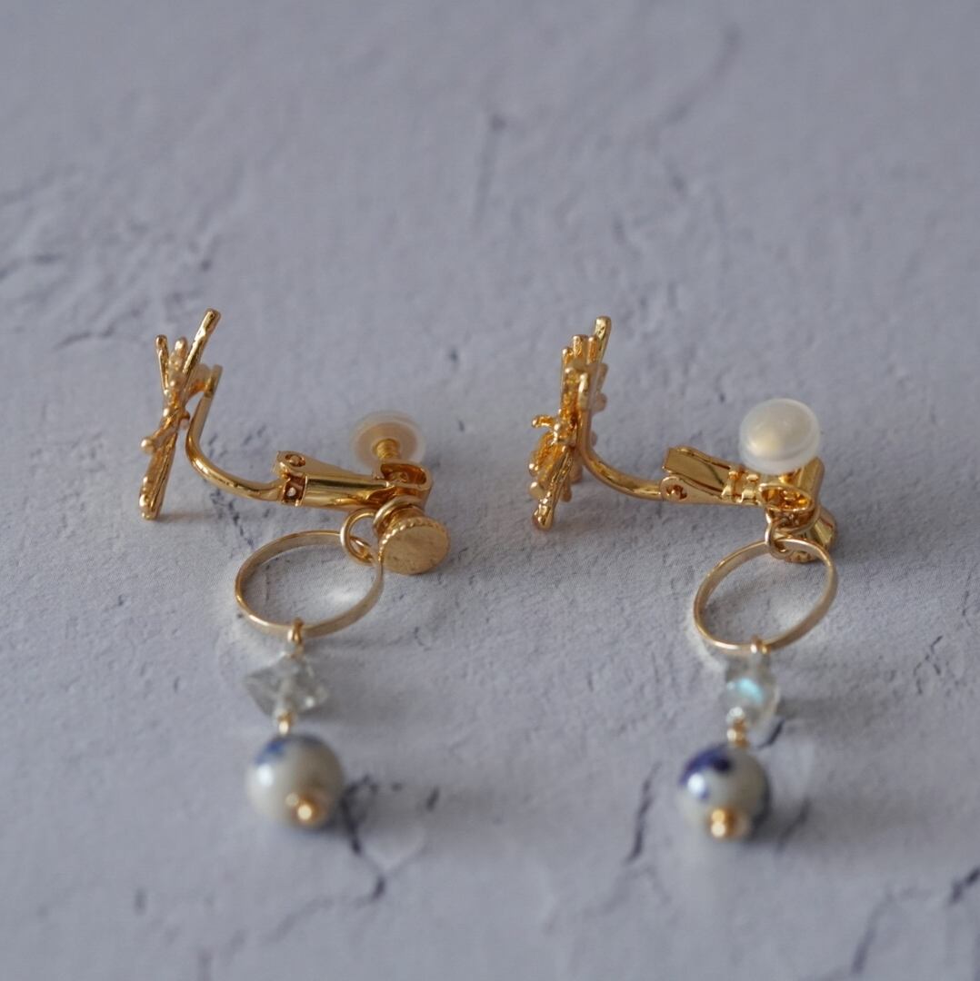 揺れるチャームはイヤリングのネジ部分に取り付けているので、