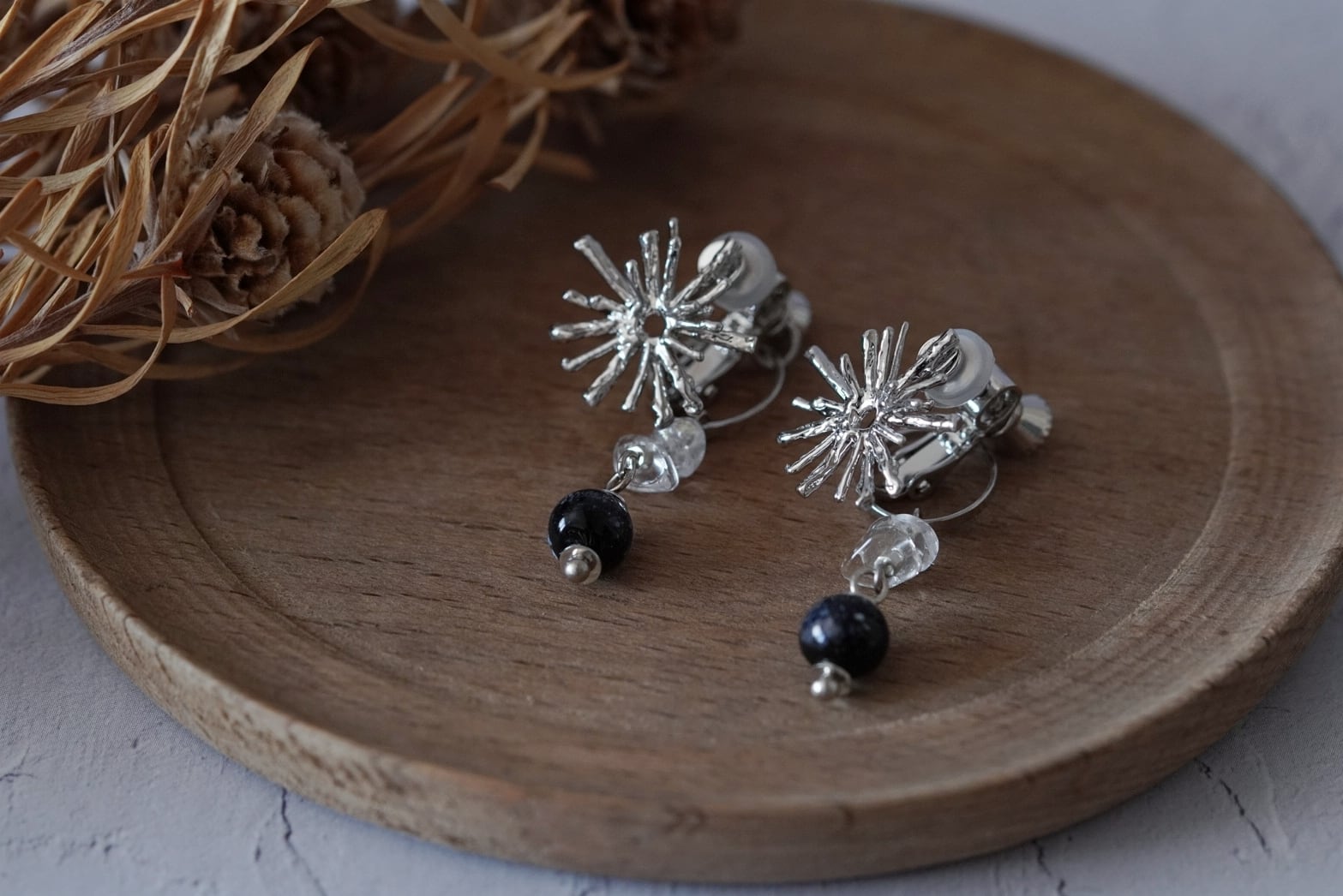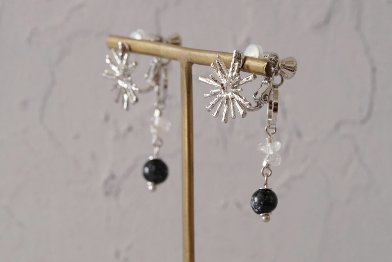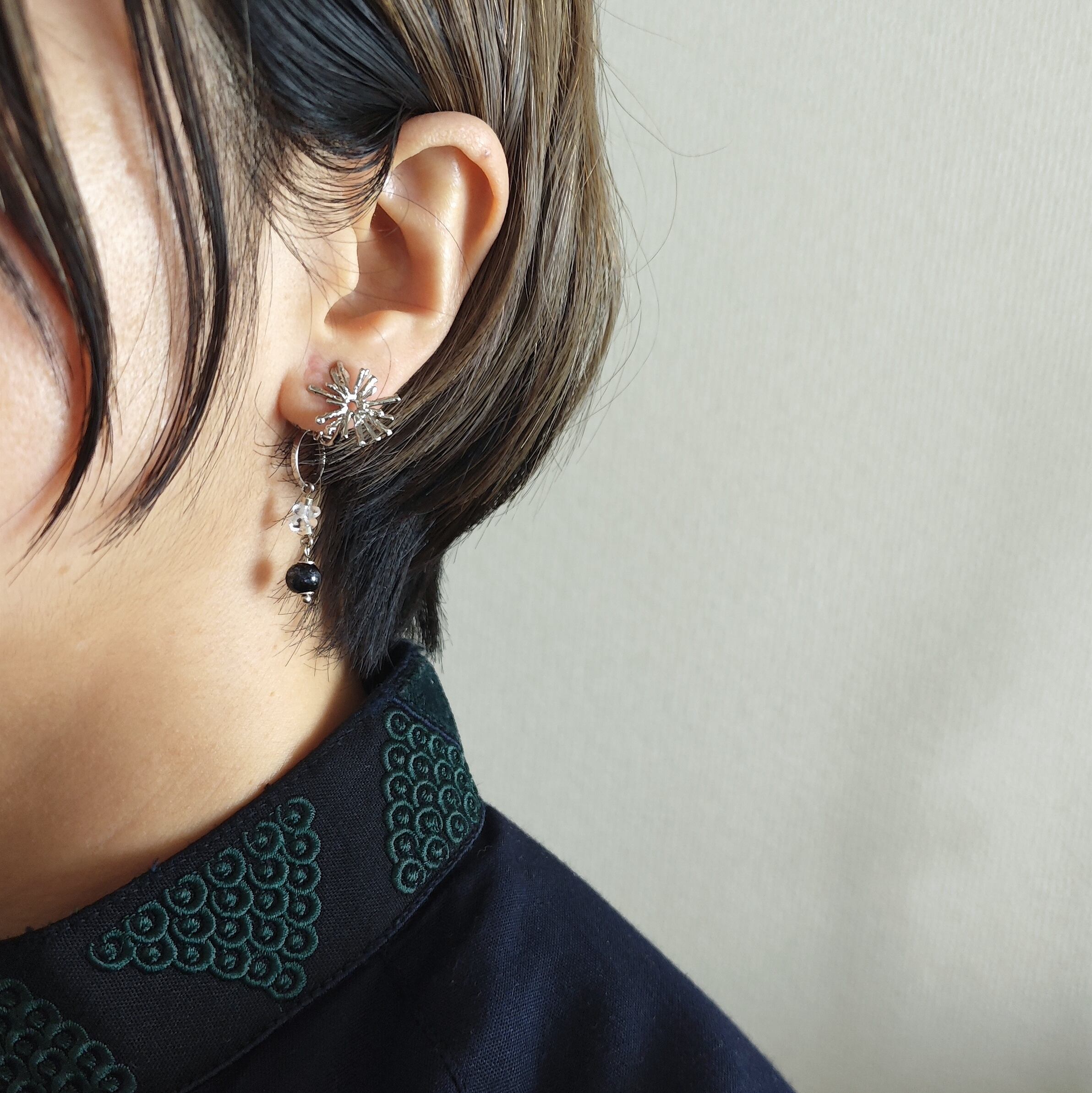 揺れるチャームはイヤリングのネジ部分に取り付けているので、