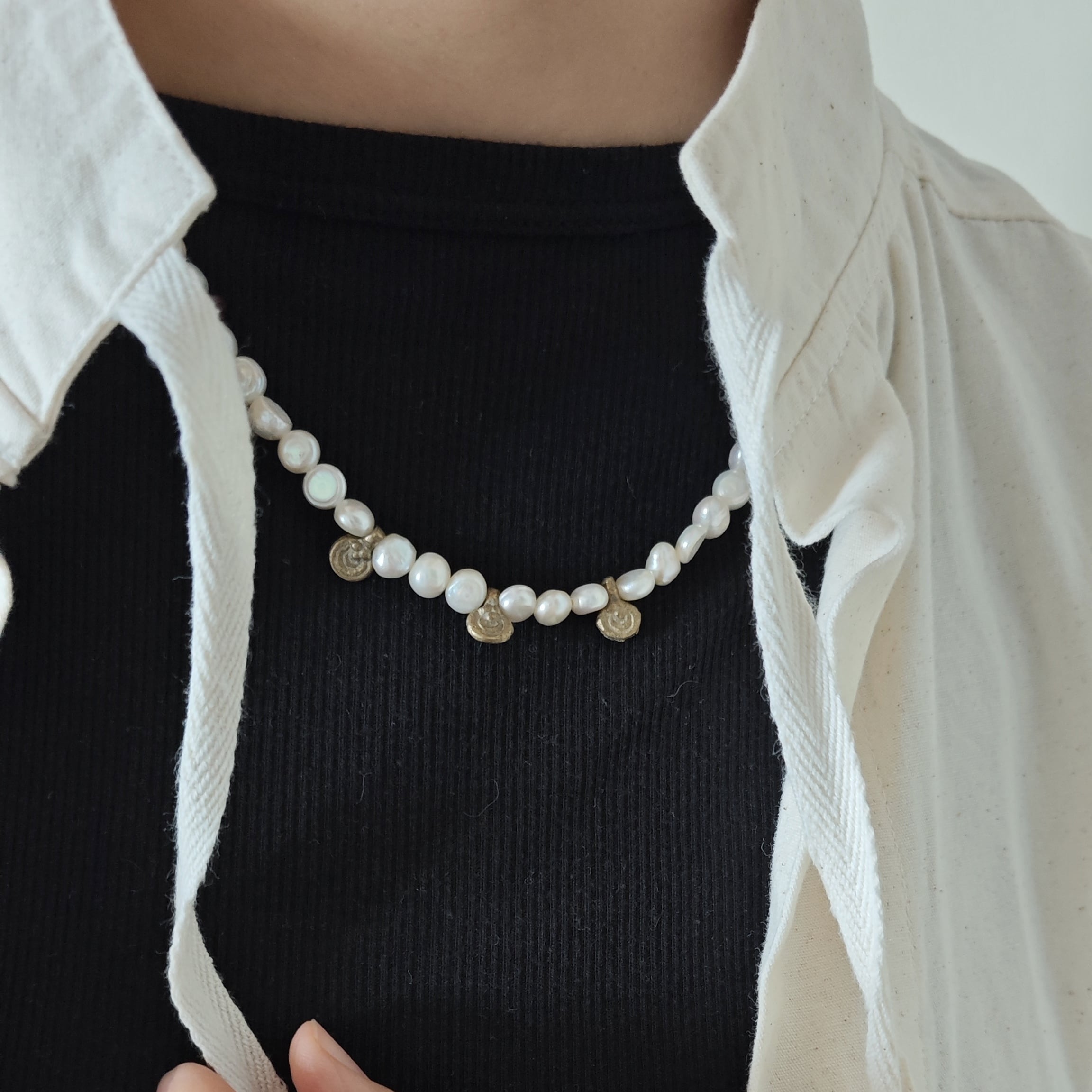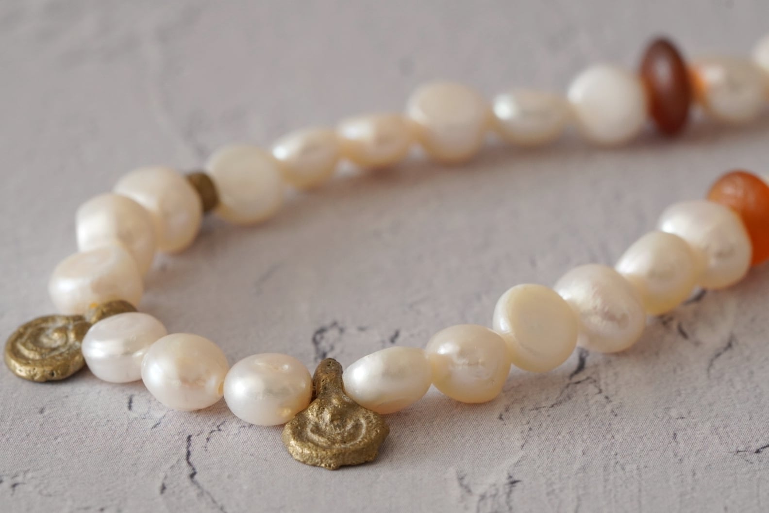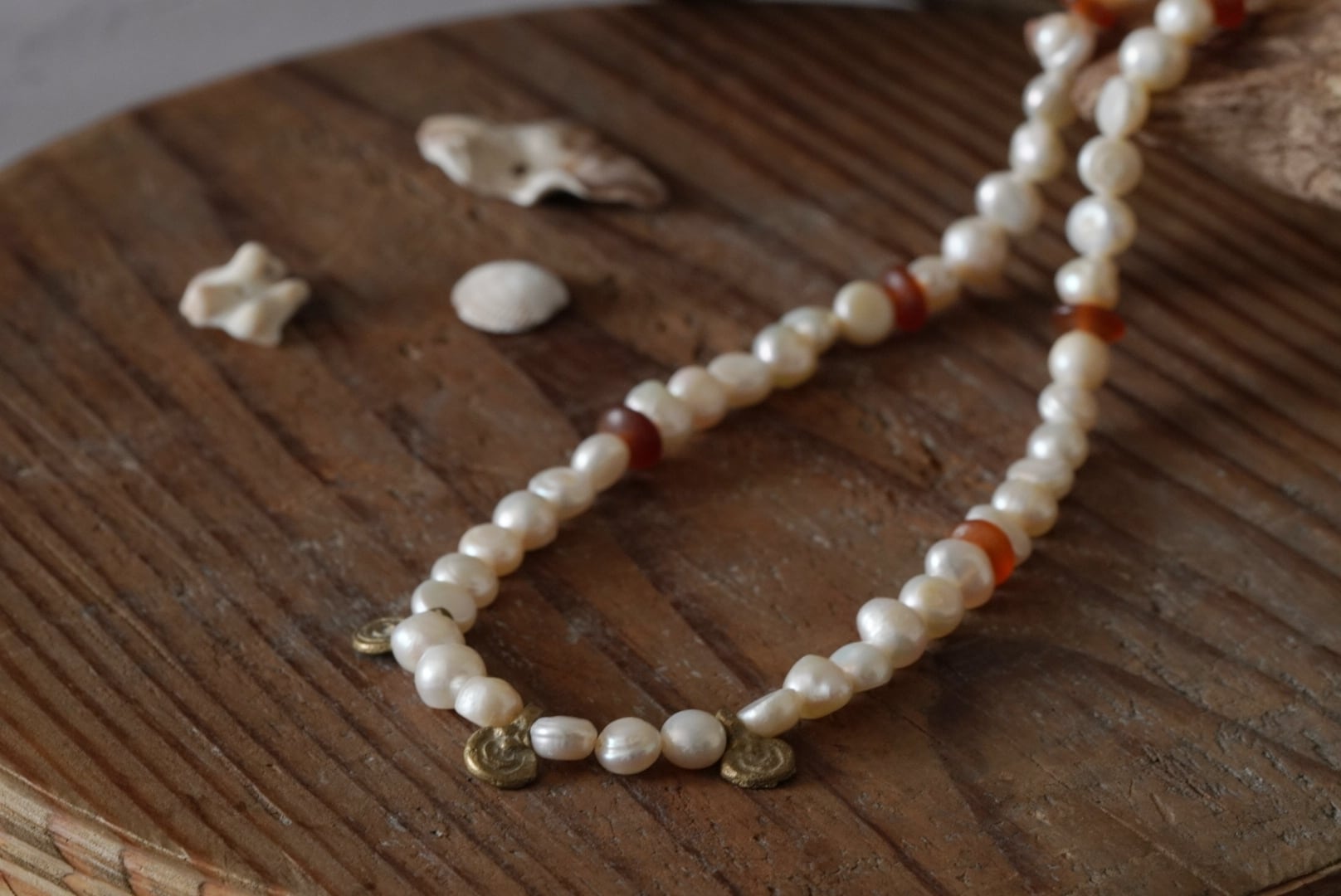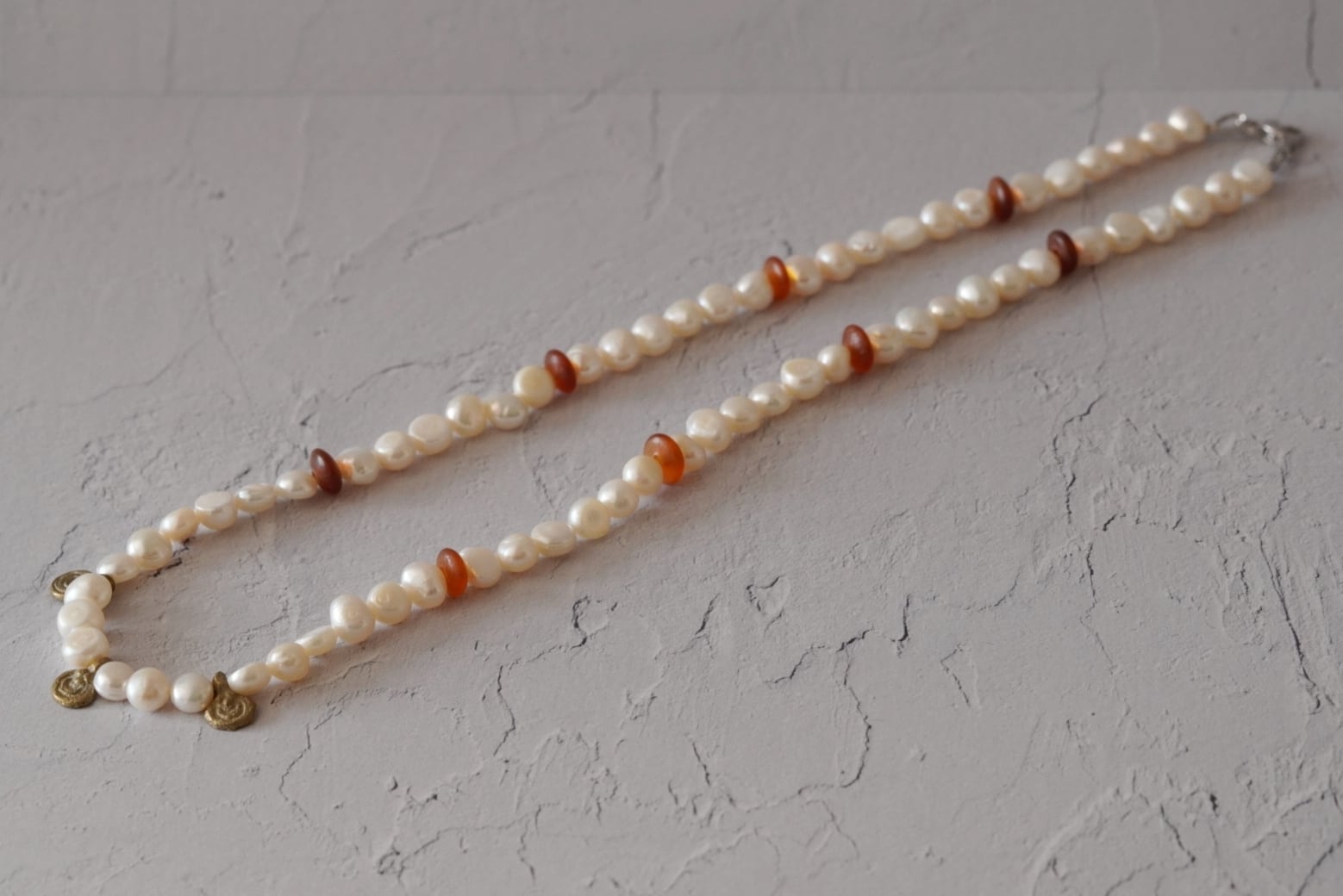 真鍮、淡水パール、水牛角