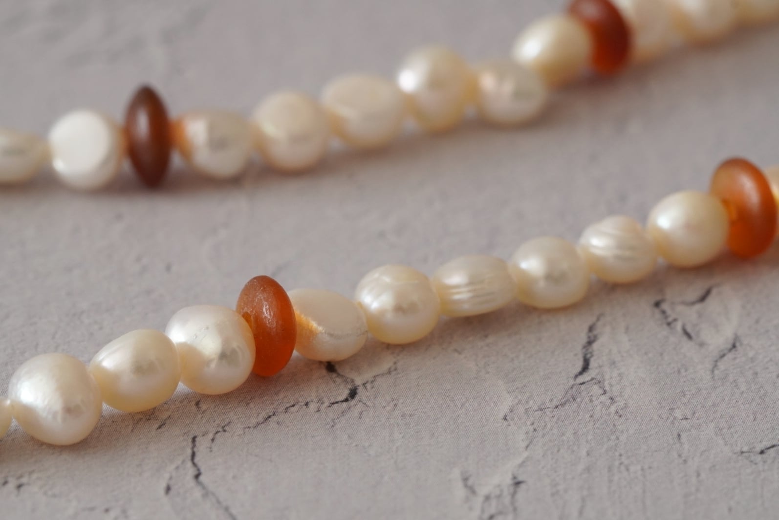 不規則な形のパールがぬくもりある印象を与えてくれます。