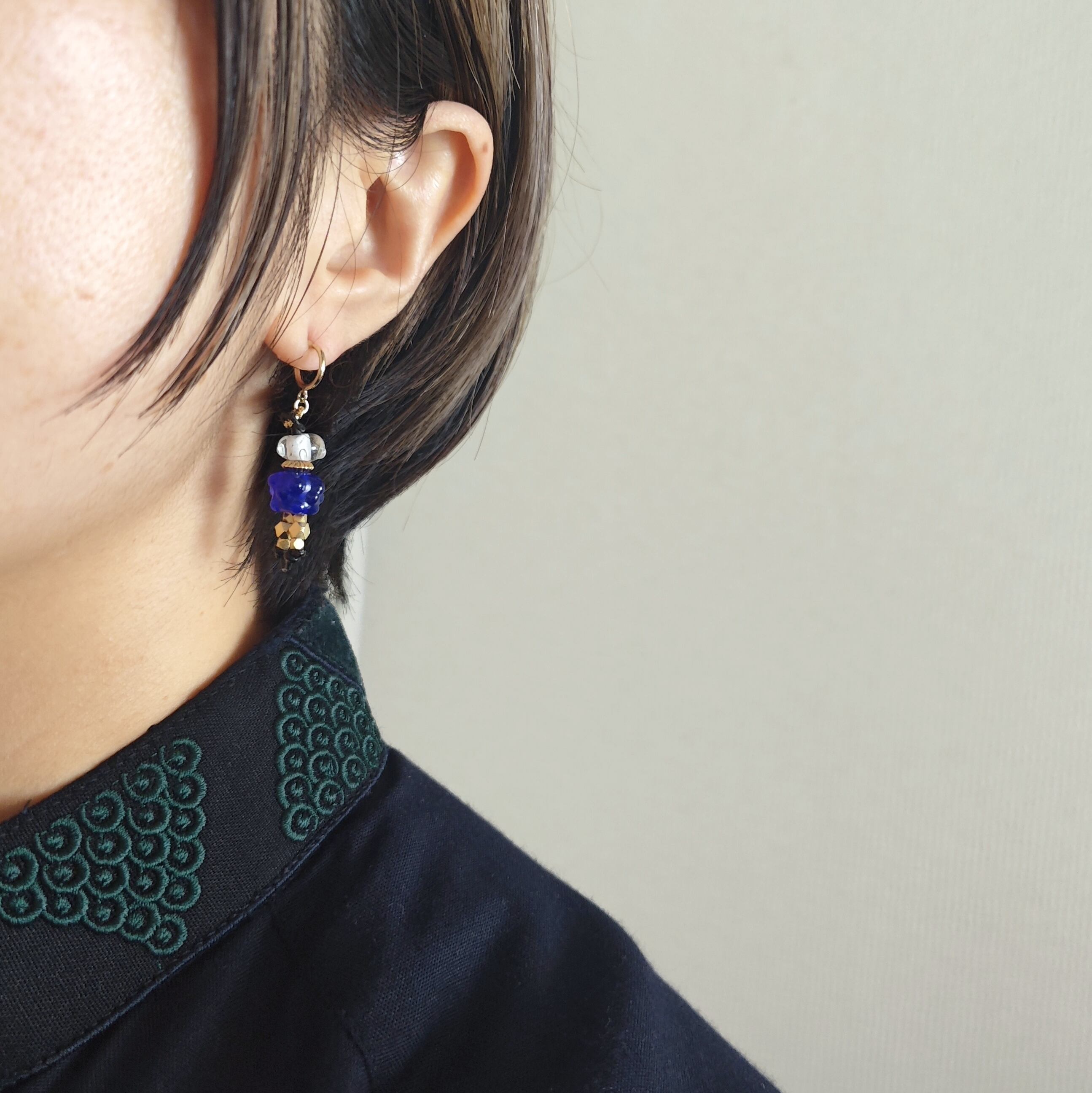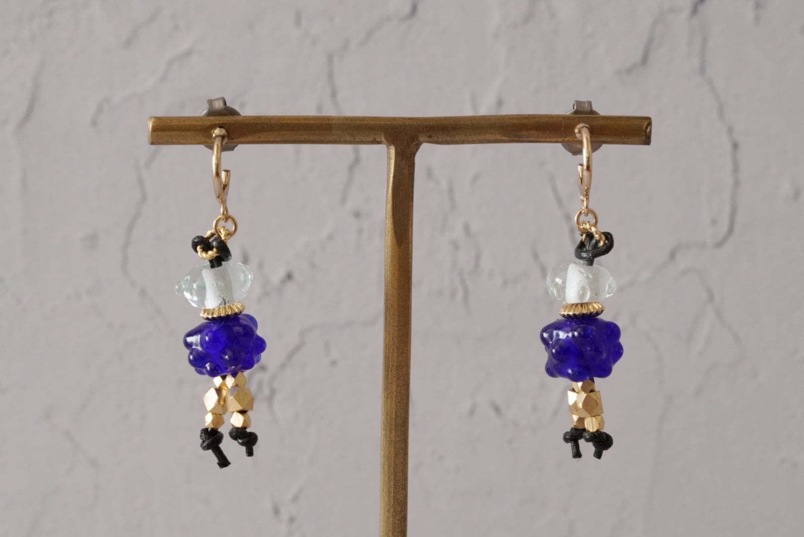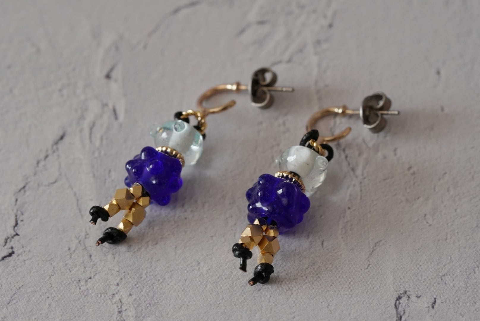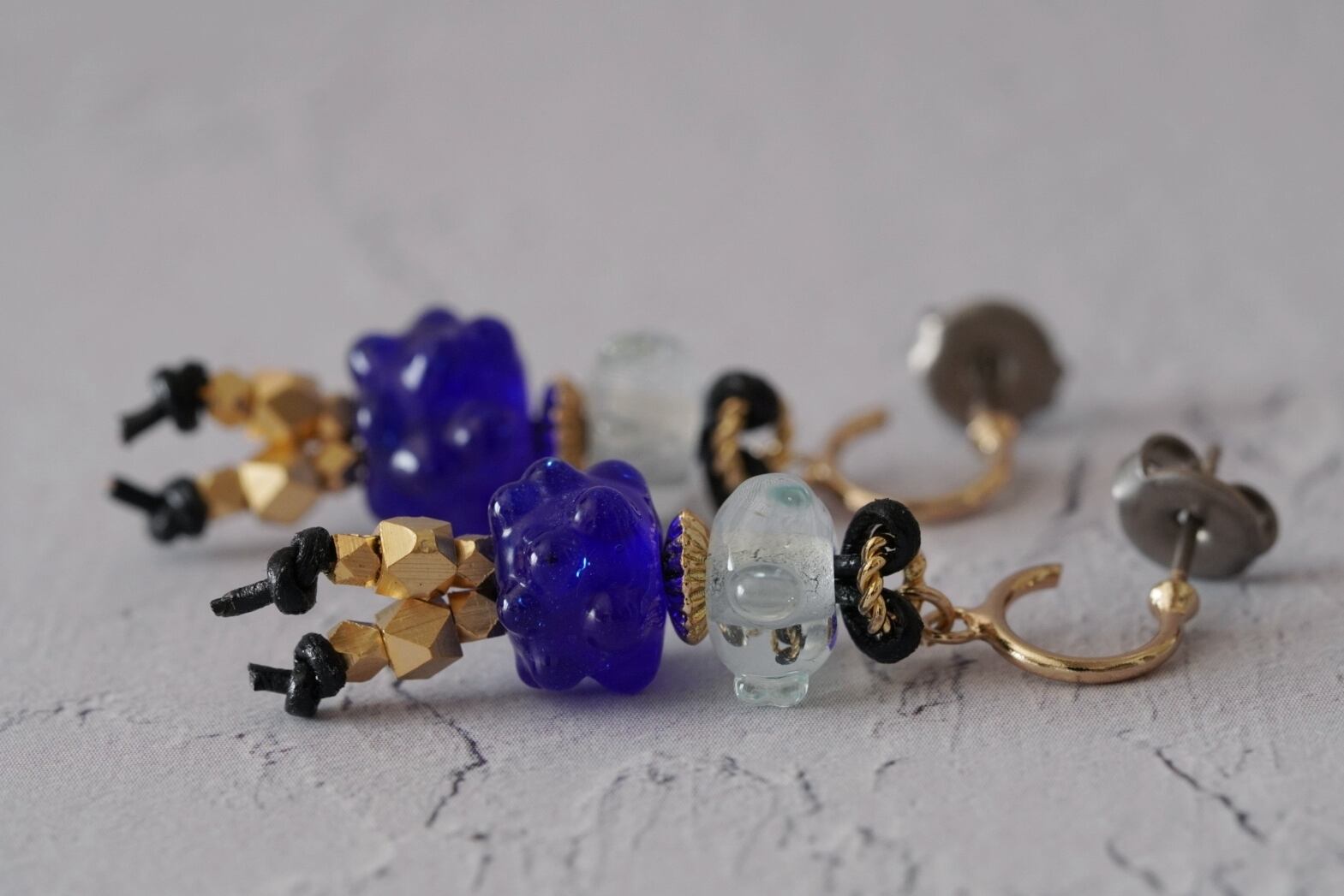 ユニークな形ですが、ガラスのきらきらした透明感がアクセサリーらしくコーディネートを引き立てます。