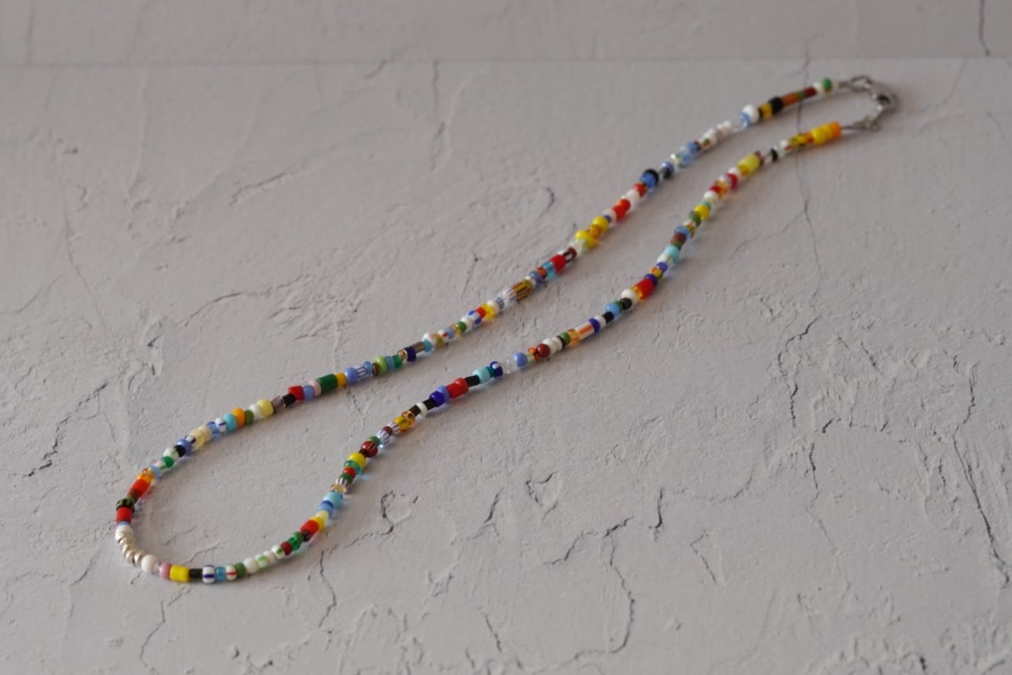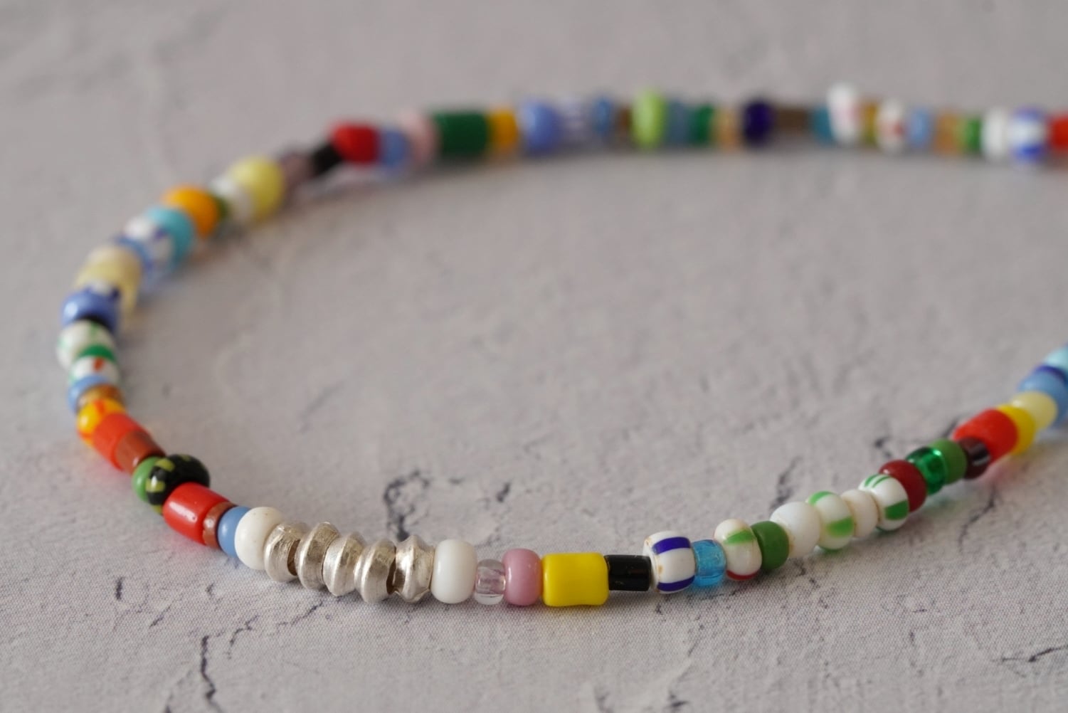 カラフルなビーズはアフリカやヴェネチア、様々な国のものが混ざっています。
