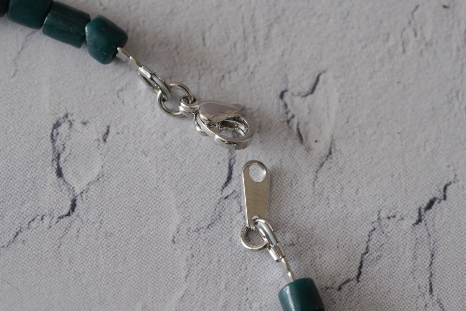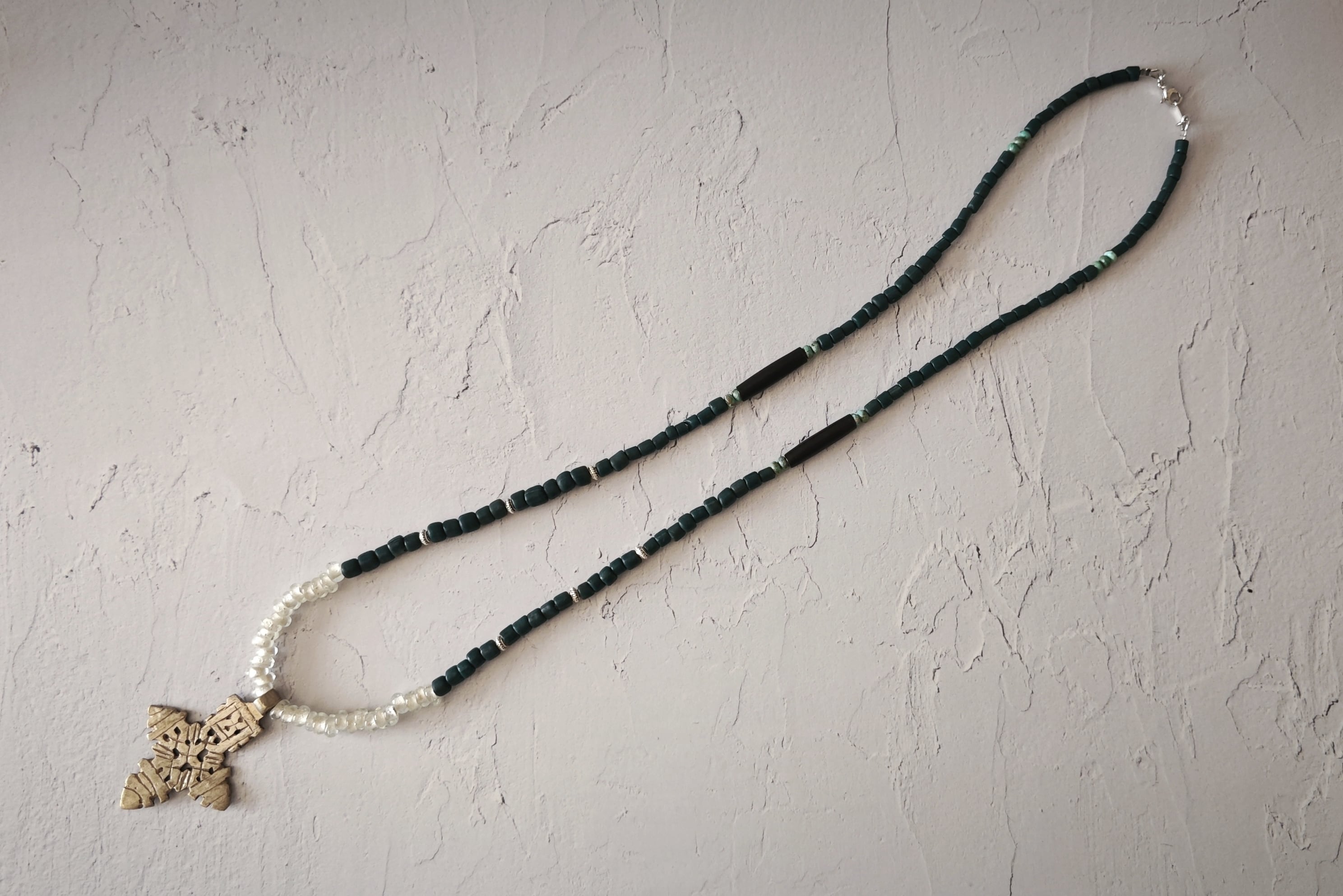 マットな深緑色はヴィンテージのガラスビーズです。