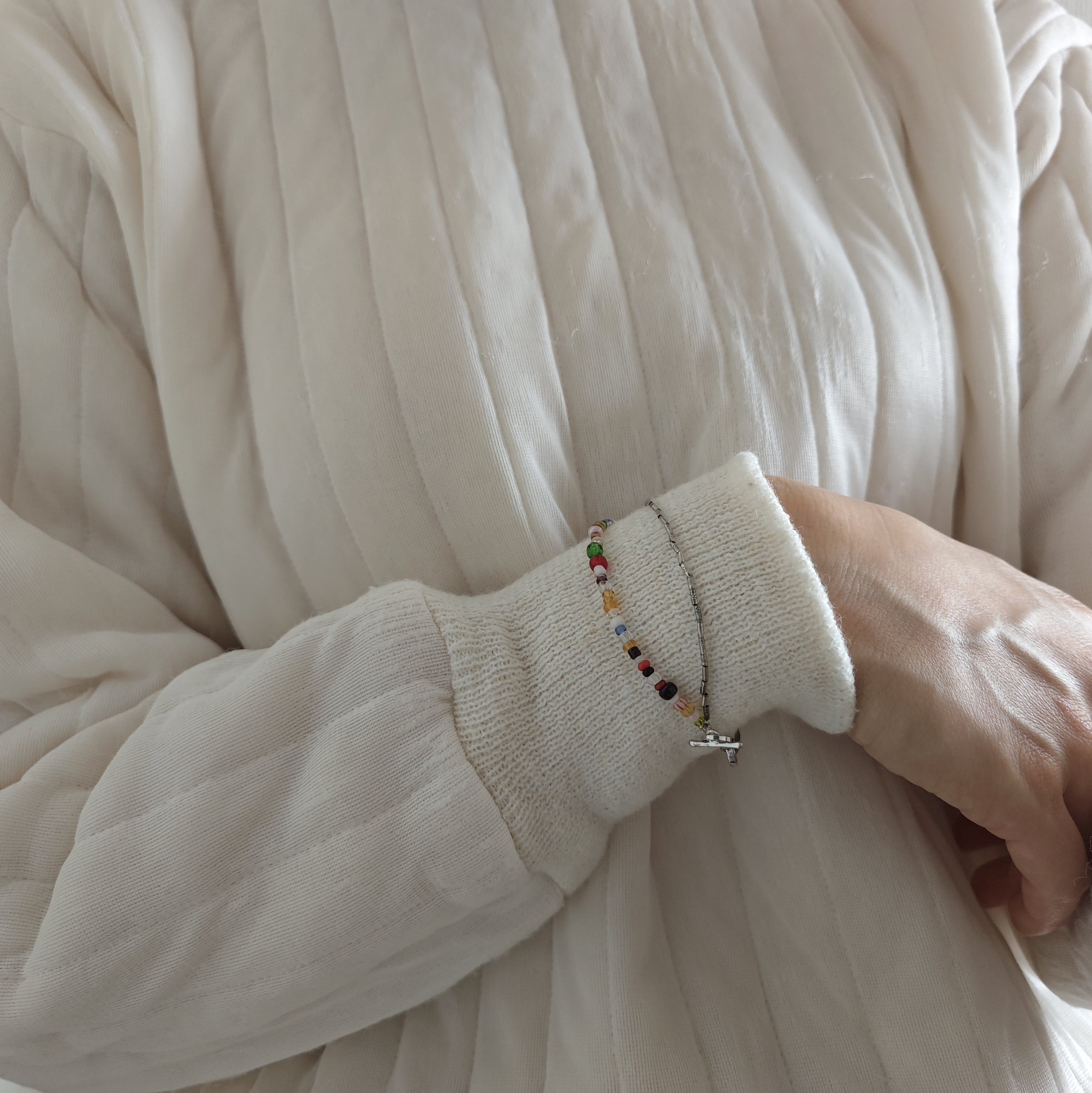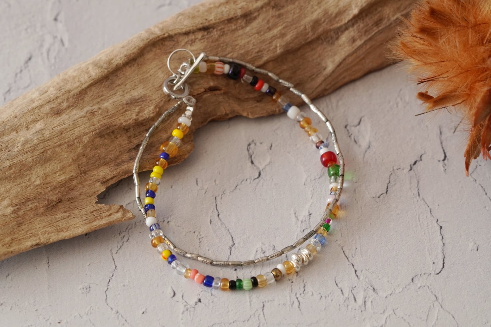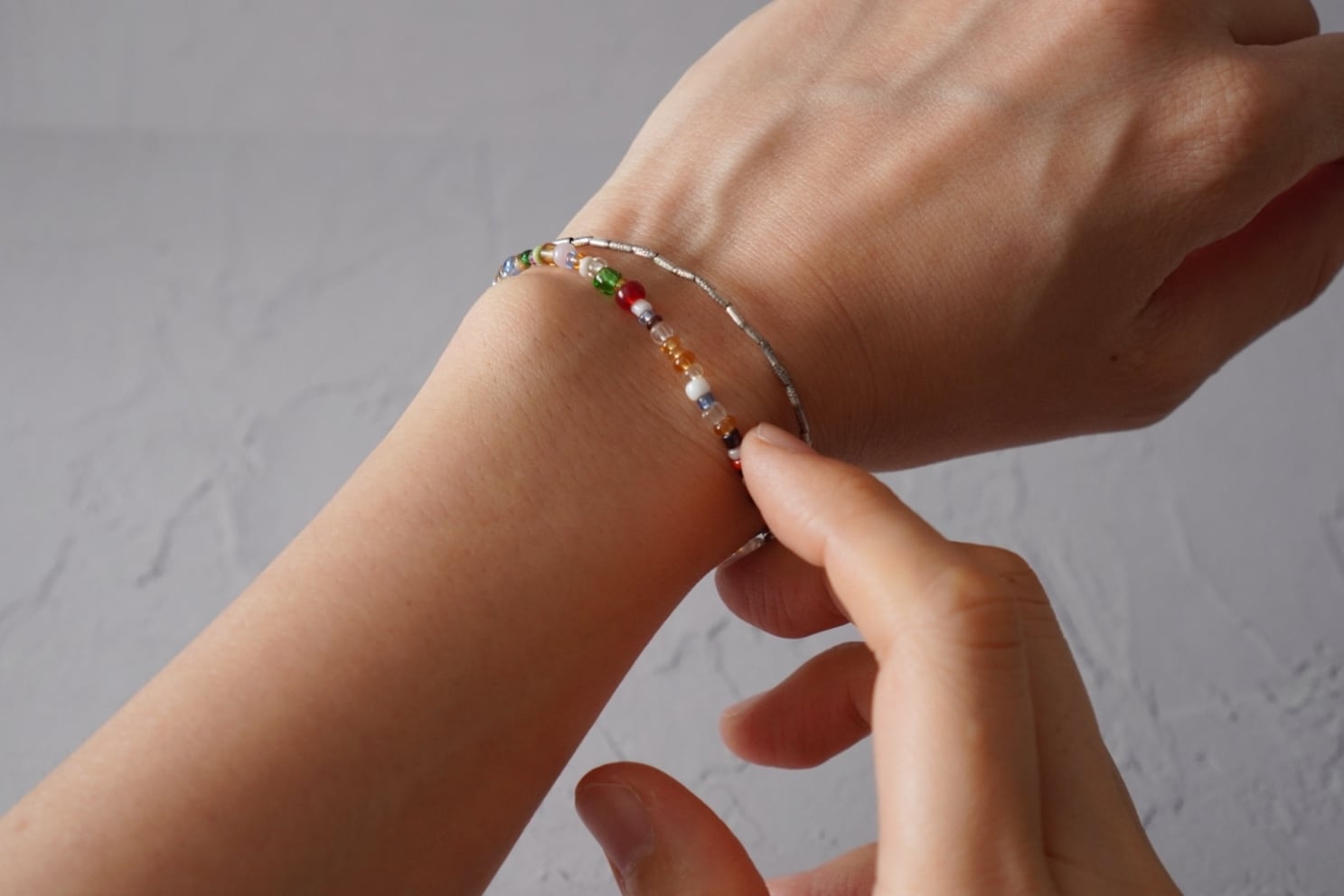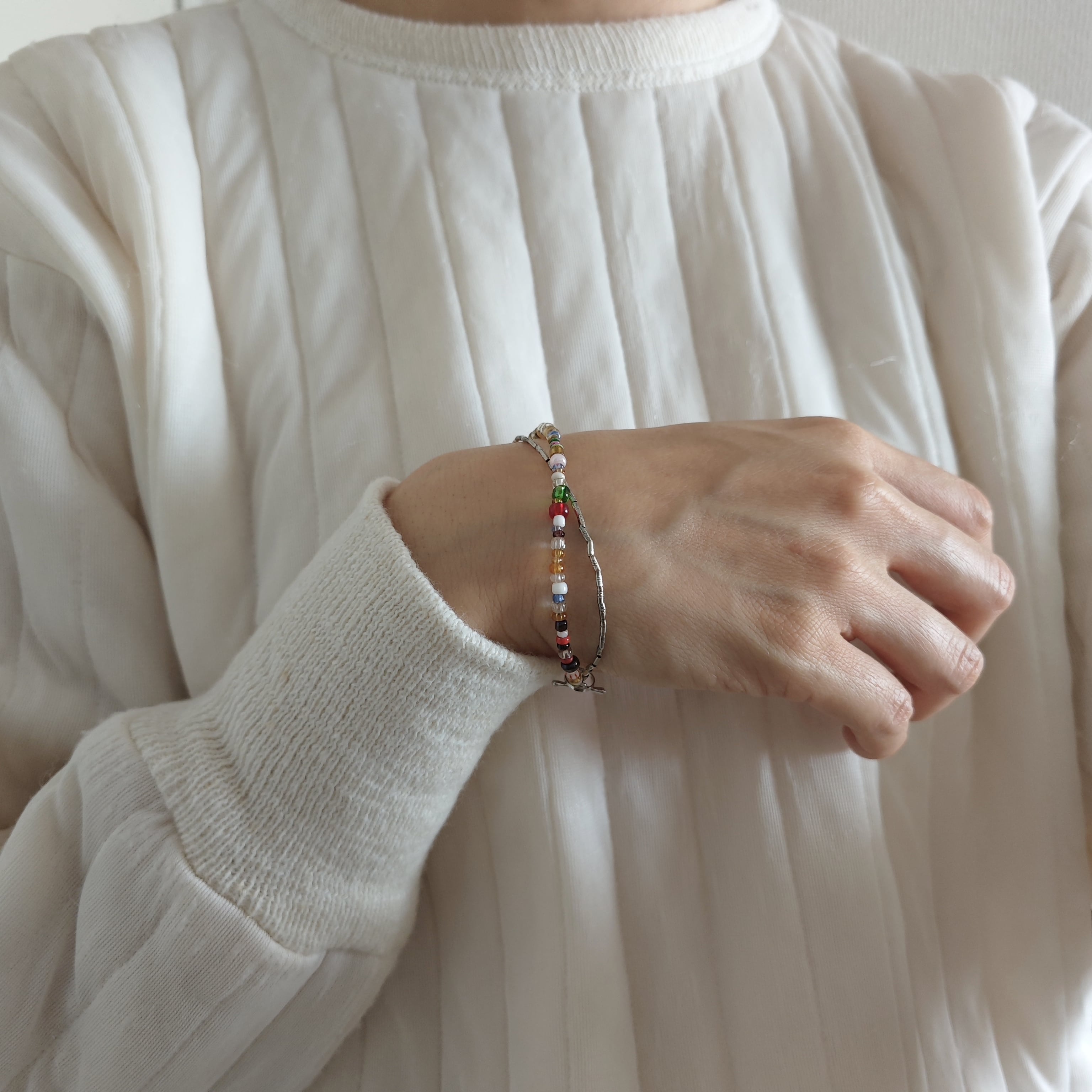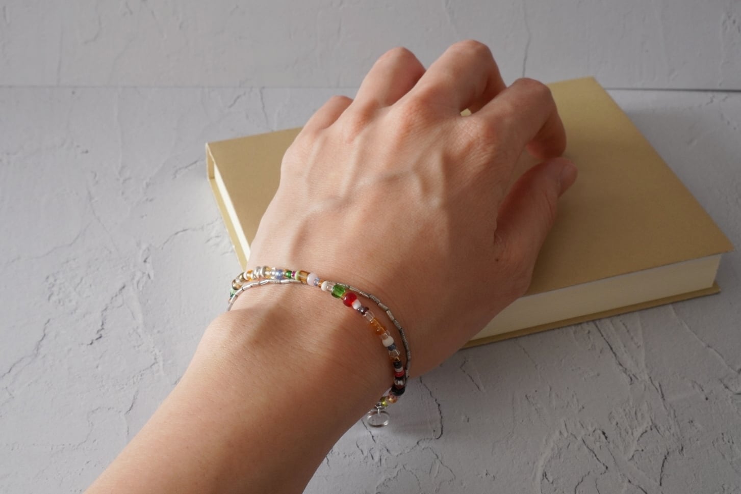 幼い頃、大切に宝箱に入れていたビーズのアクセサリーをモチーフにしたブレスレットです。