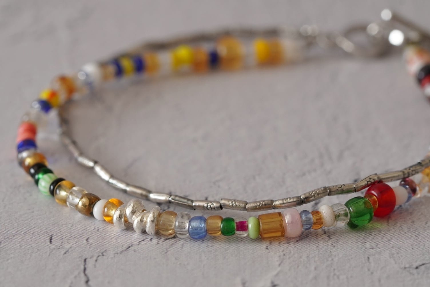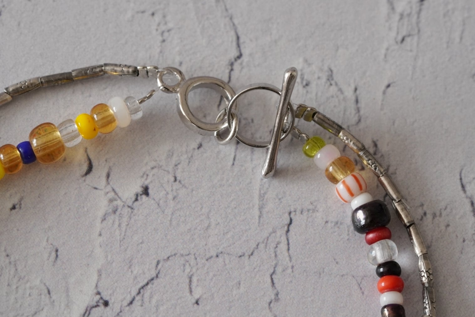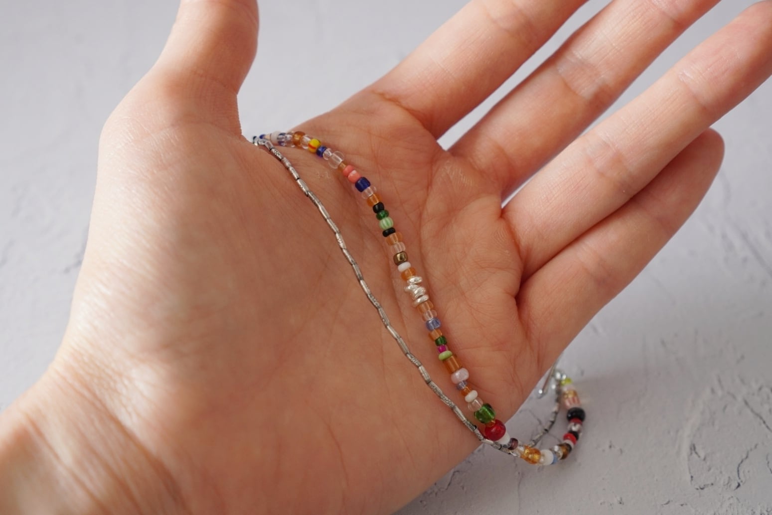 カラフルなビーズはアフリカやヴェネチア、様々な国のものが混ざっています。