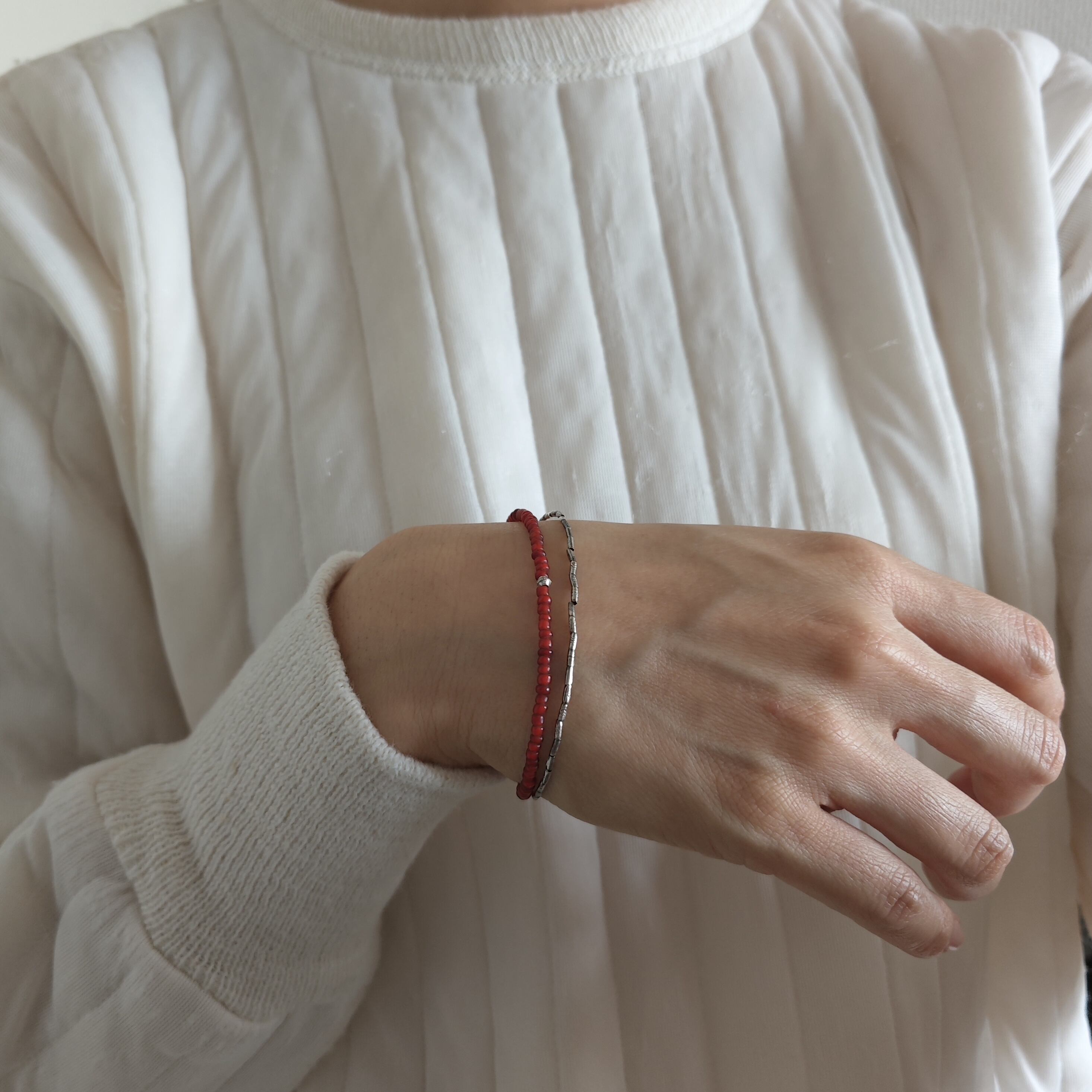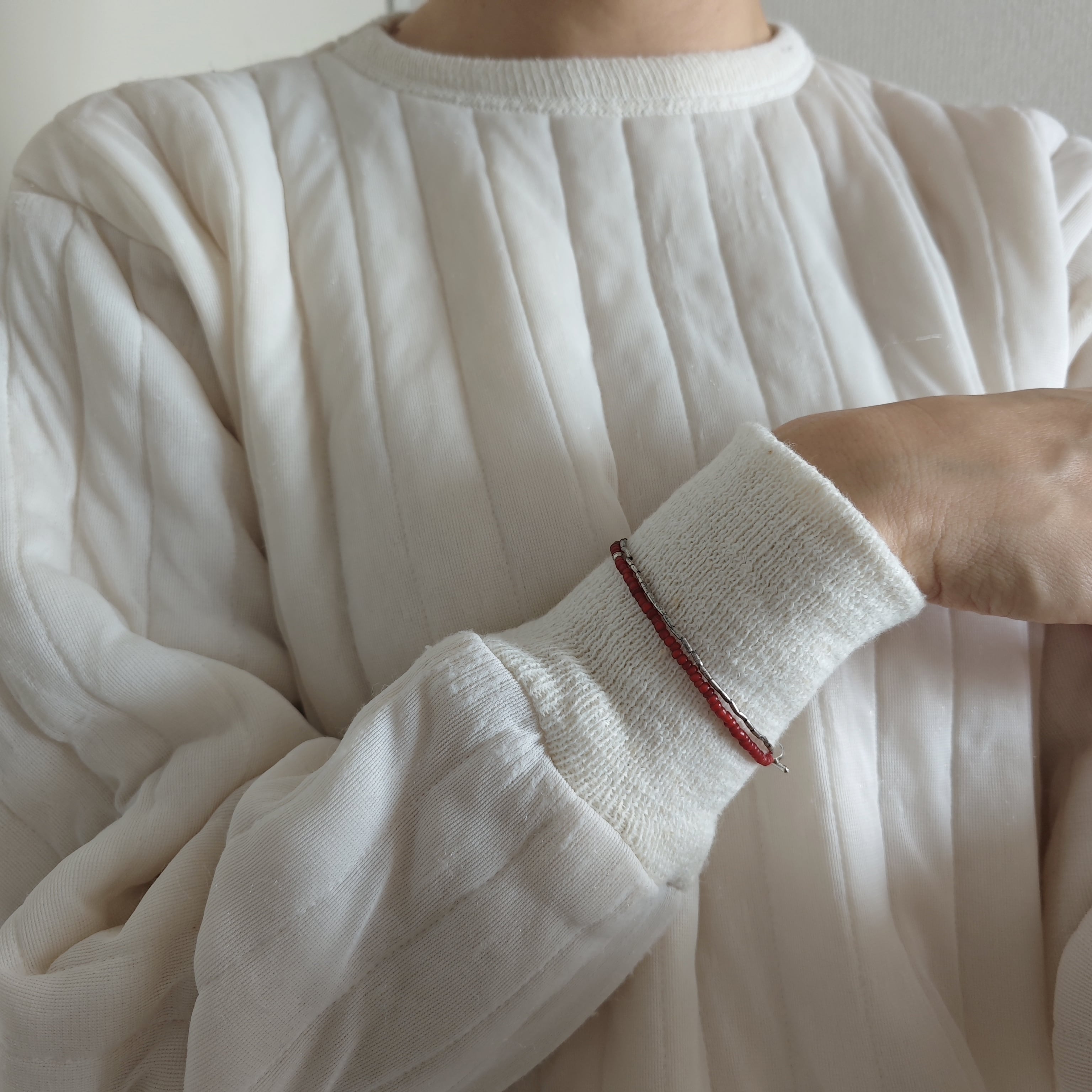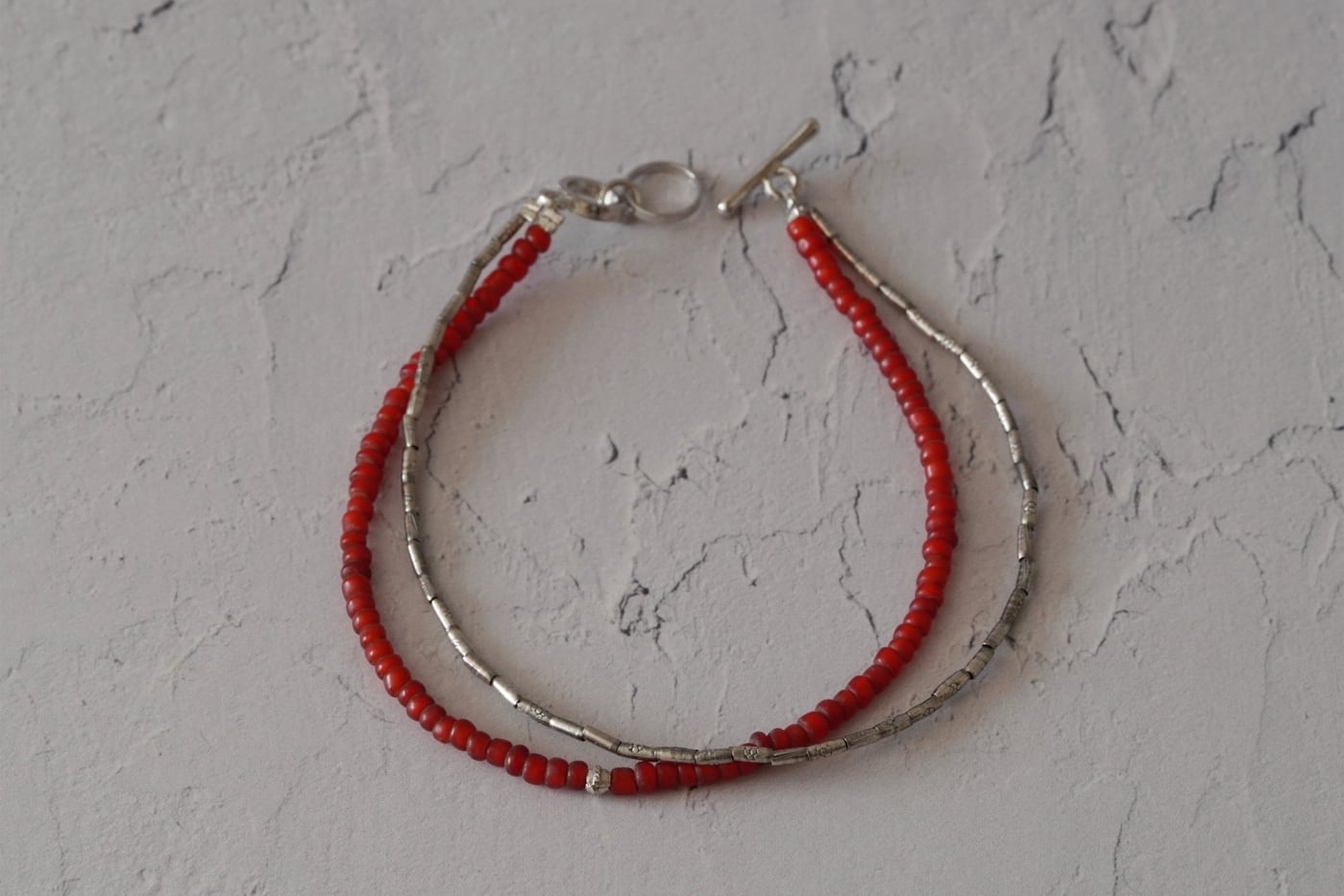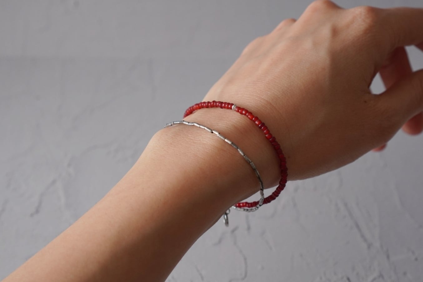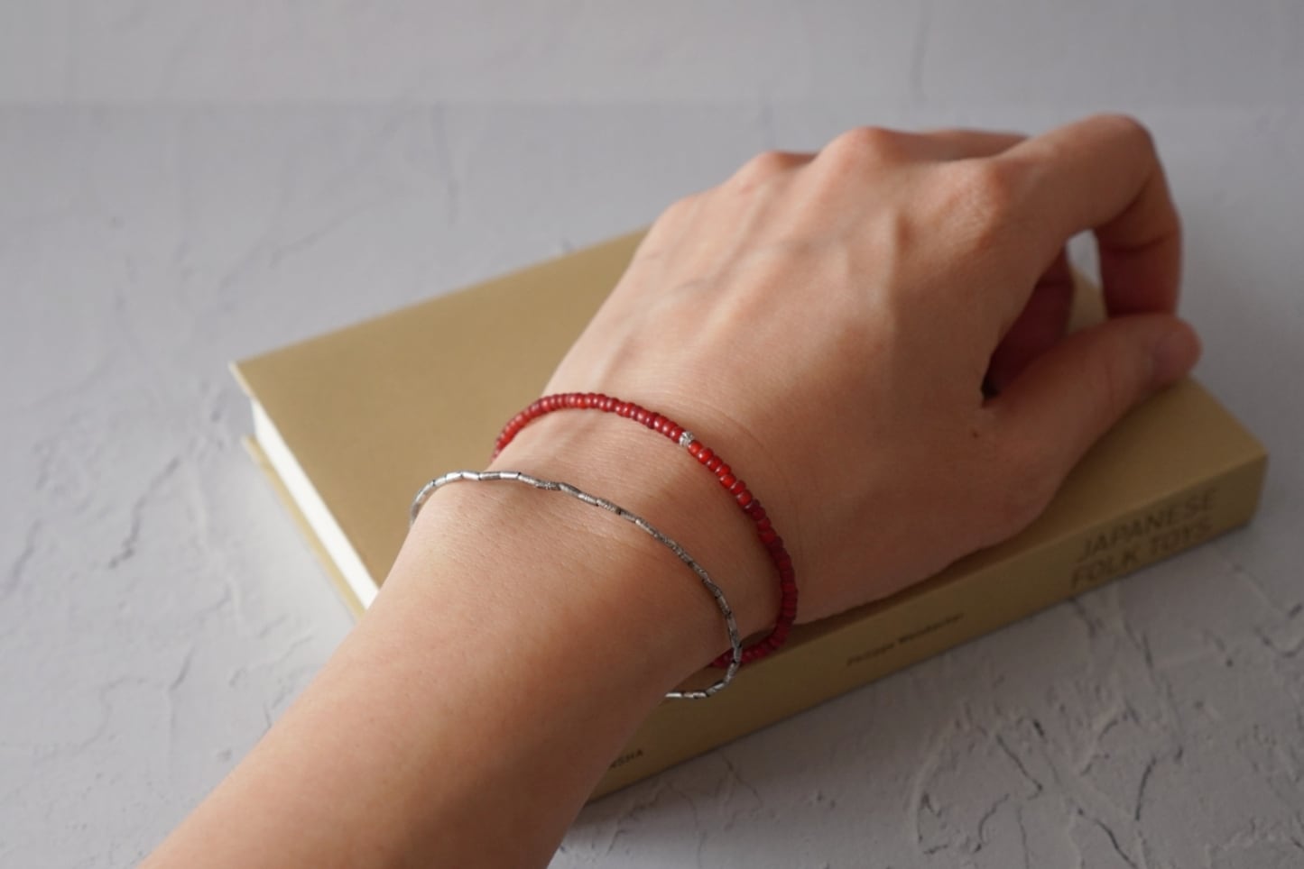 幼い頃、大切に宝箱に入れていたビーズのアクセサリーをモチーフにしたブレスレットです。