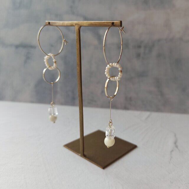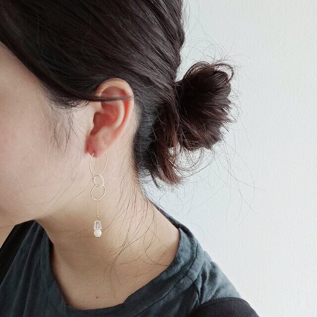 ピアス金具はフープタイプを使用し、円の連なりに一体感を持たせています。