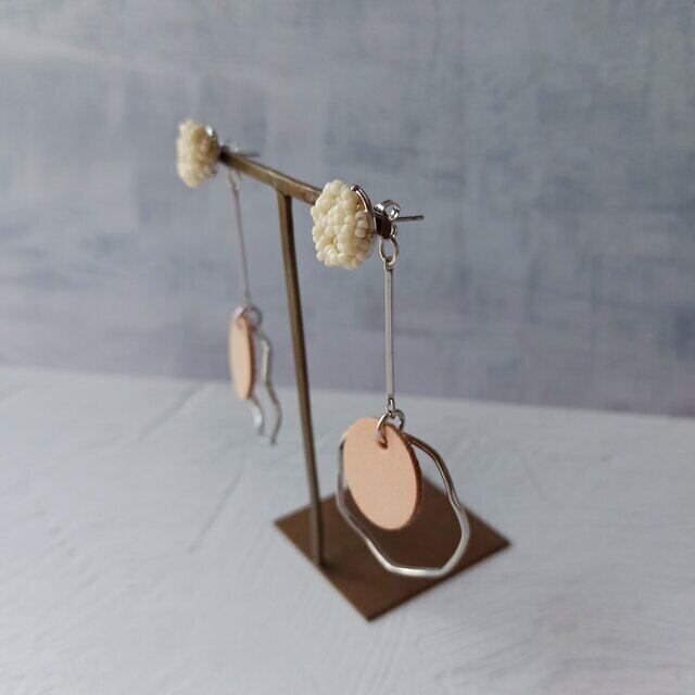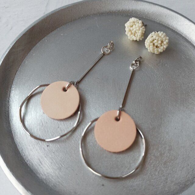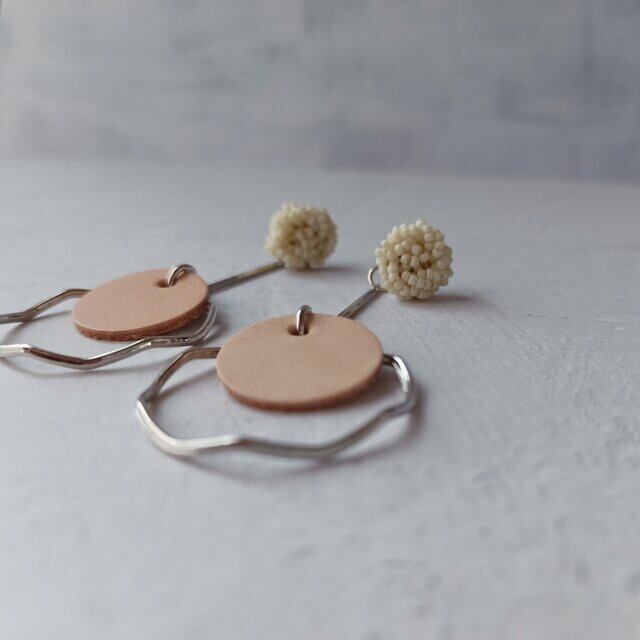 ナチュラルなヌメ革レザーを組み合わせたピアスです。