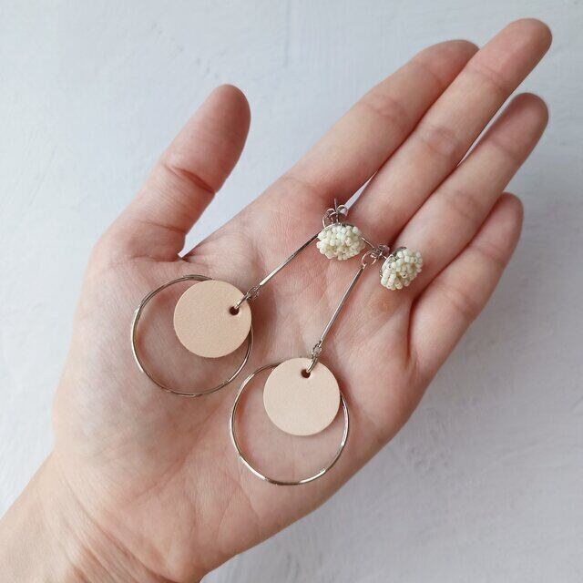 小粒ビーズとレザーの2WAYピアス