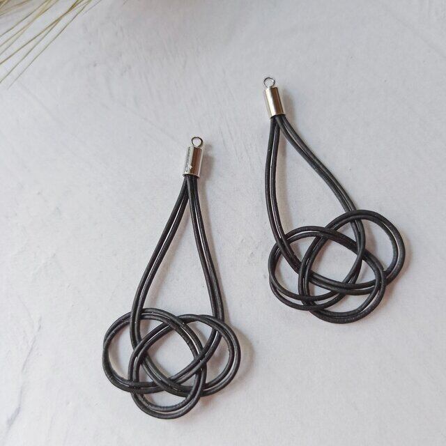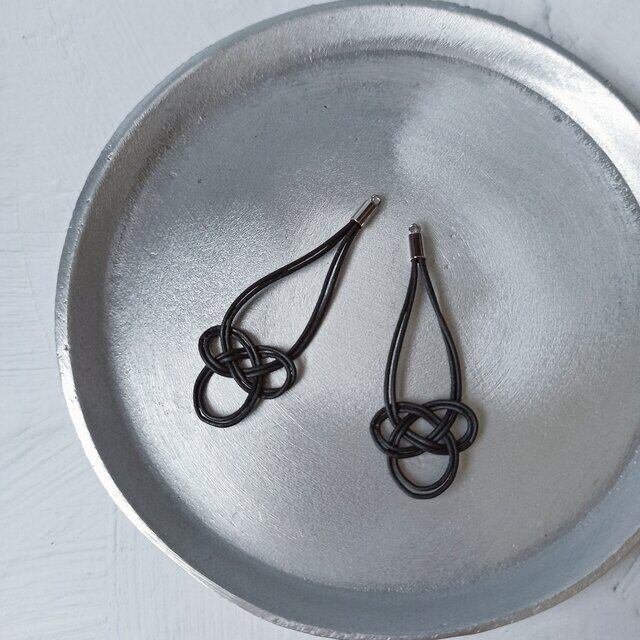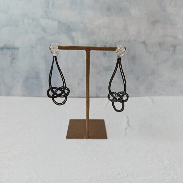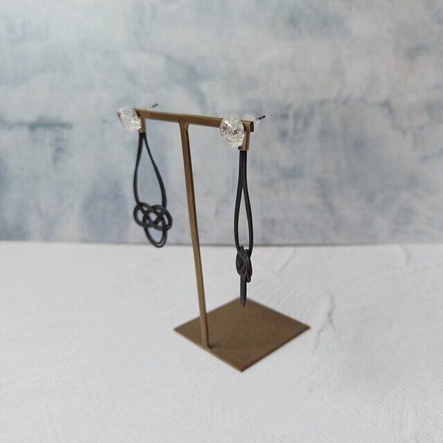 琉球ガラスの粒と淡路結びをしたレザーを組み合わせたピアスです。
