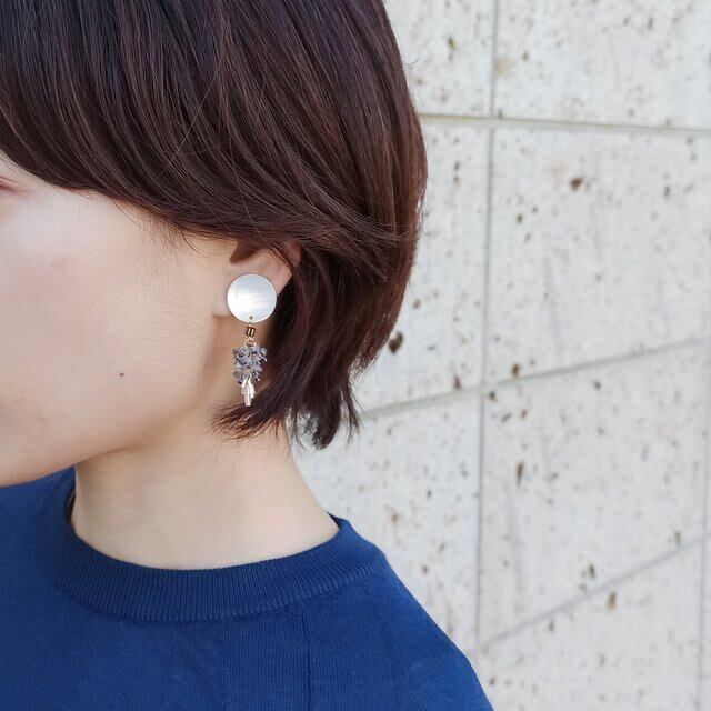 丁寧に、たっぷり贅沢に取り付けたピアスです。