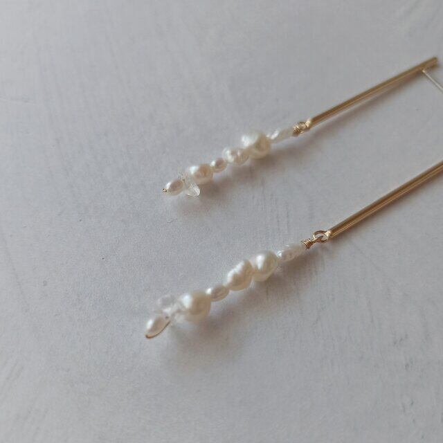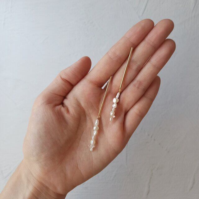 Iラインの揺れる淡水パールピアス