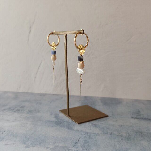 真鍮、ソーダライト、ウッド、淡水パール、樹脂