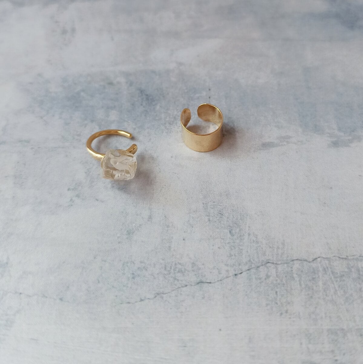 少し幅の広いゴールドの2種類のシンプルなイヤーカフのセットです。