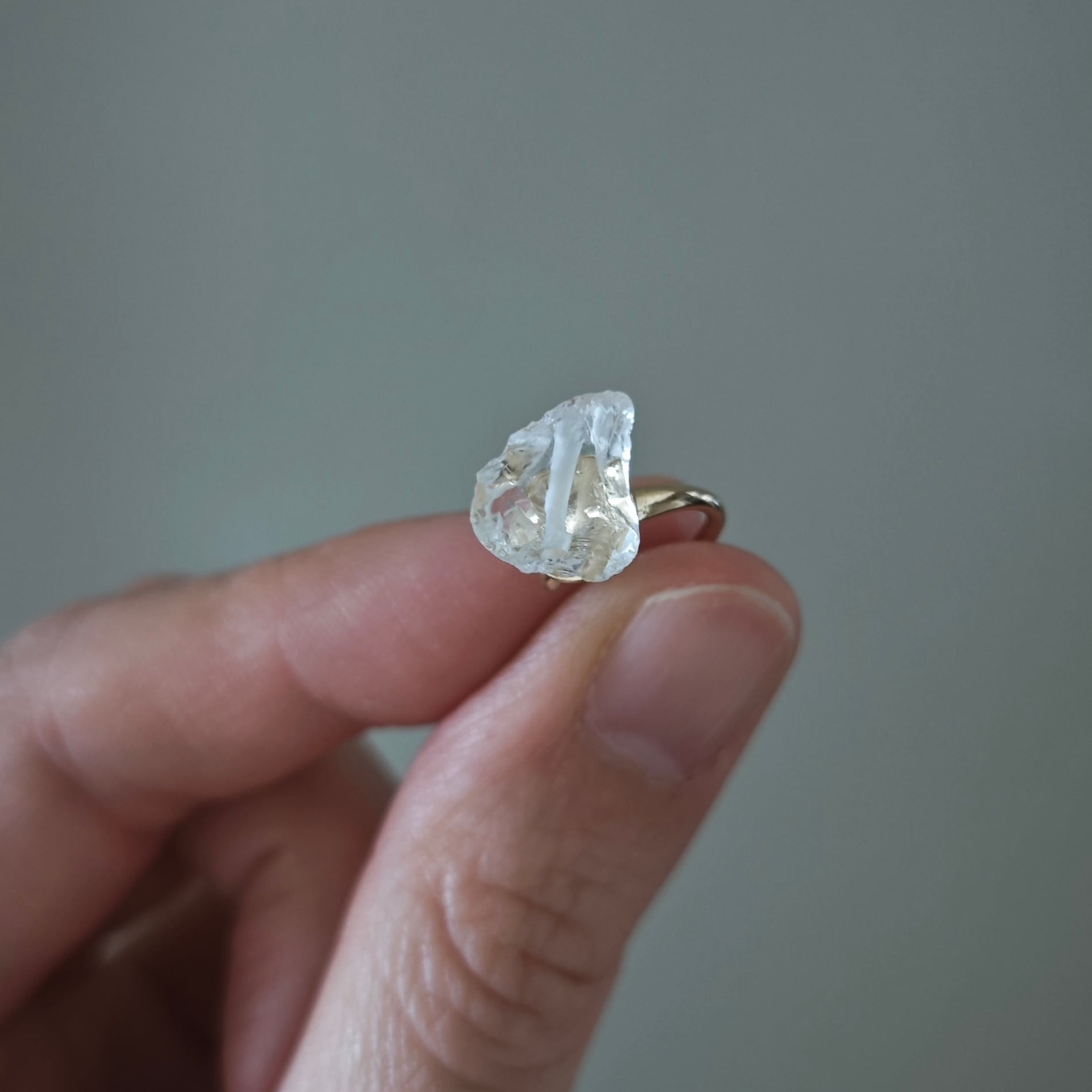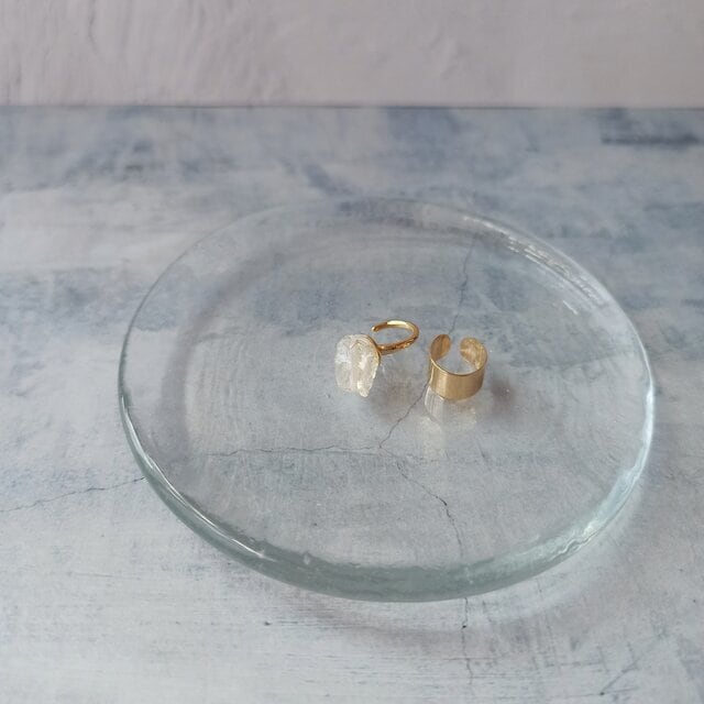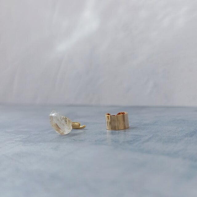 氷のような透明感を持つ水晶を使用したイヤーカフと、
