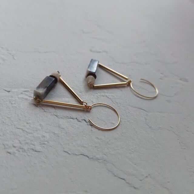 ブルー系の天然石を組み合わせてシャープな三角形を象ったピアスです。