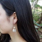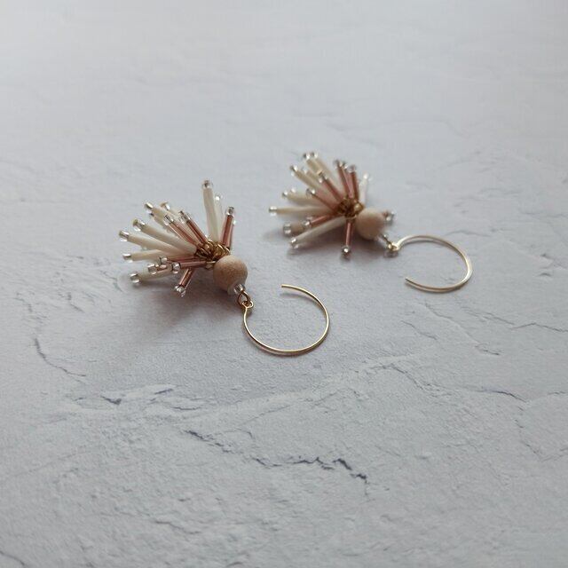 ホワイト×ピンクの花ガラスビーズ ピアス