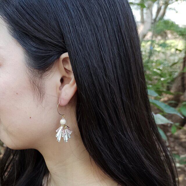 それぞれの筒ビーズの先には花に落ちる朝露のような