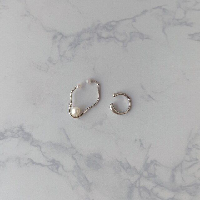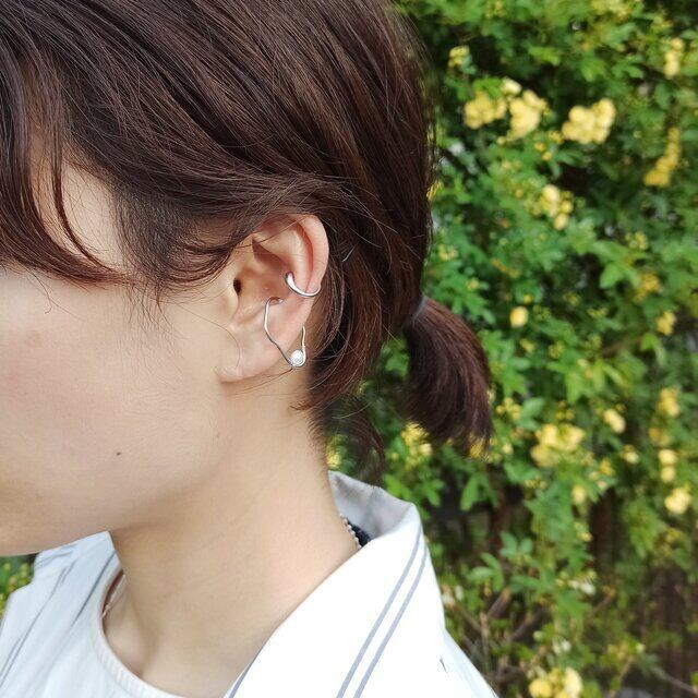 シルバーカラーにパールをのせ、柔らかな印象にまとめたイヤーカフと