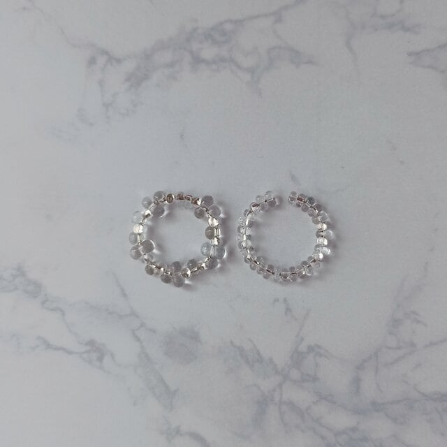 透明感の美しいガラスのビーズを使用した2本セットのリングです。