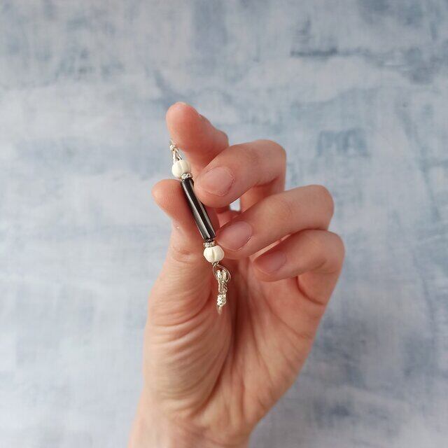 ボーンビーズの先の丸い穴にフックをひっかけて着用します。