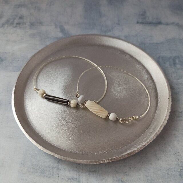 ナチュラルなボーンビーズを使用してバングルに仕立てました。