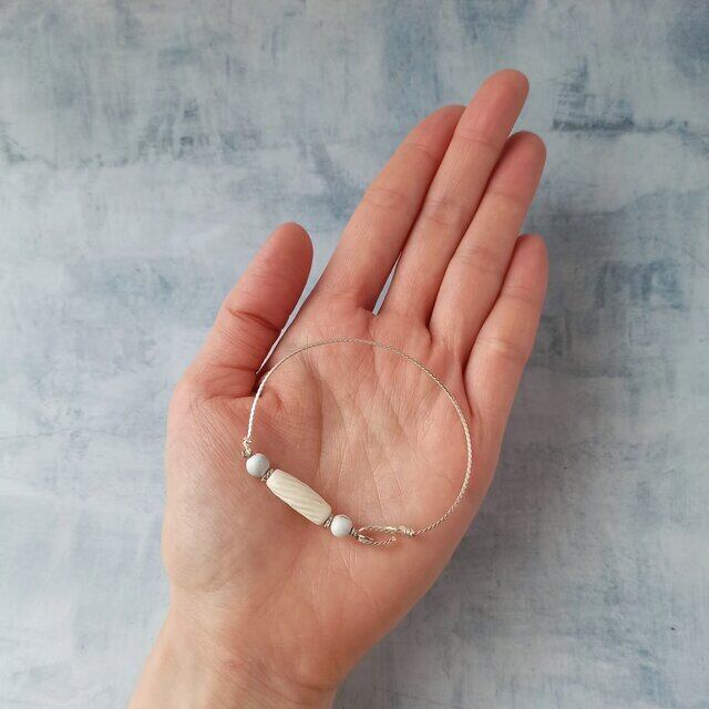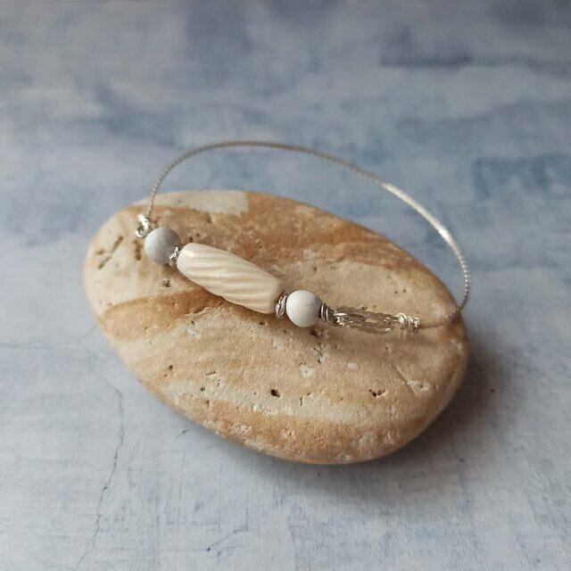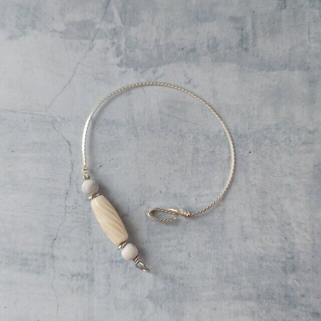 ナチュラルなボーンビーズと天然石を使用してバングルに仕立てました。