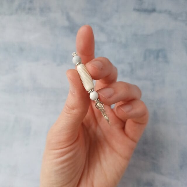 白いハウライトの石とシルバーカラーのメタルを組み込むことで、