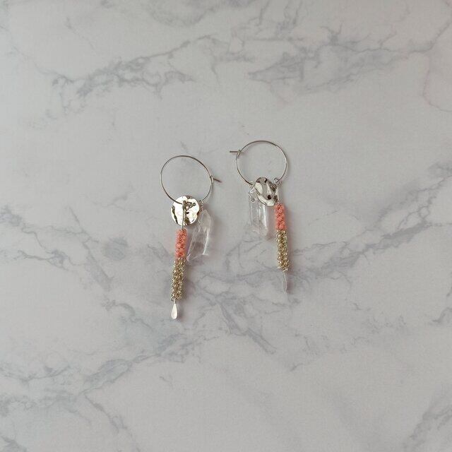 ビーズはコーラルピンクと、シルバーカラーを組み合わせ