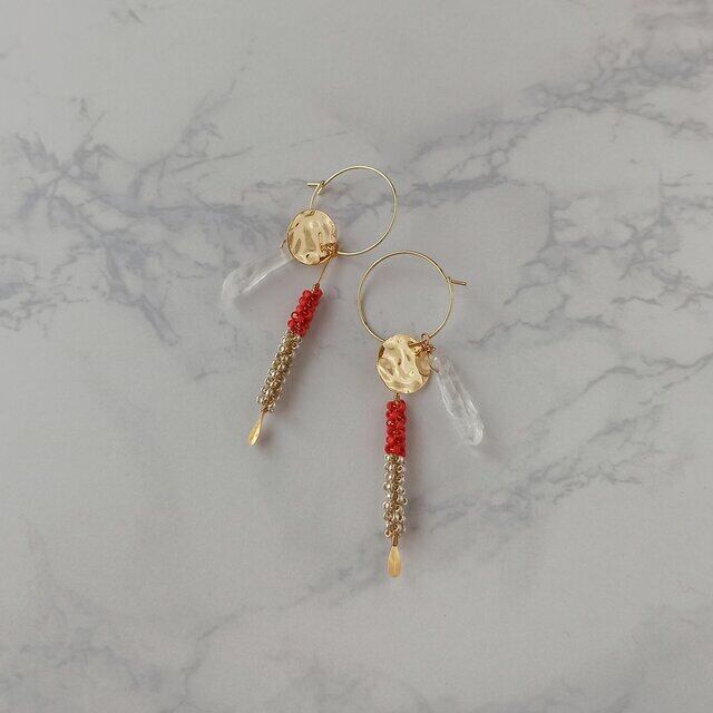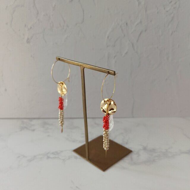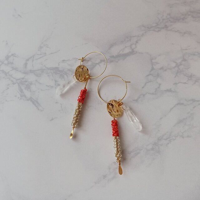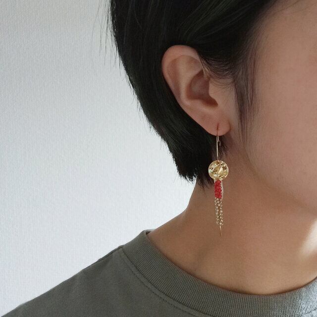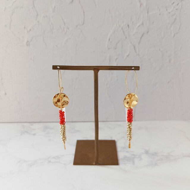 民族衣装の装飾のような雰囲気をもつフープピアスです。