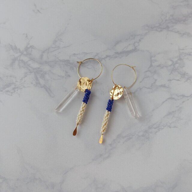 ビーズは深みのあるブルーとアイボリーを組み合わせ