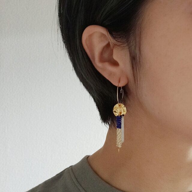 民族衣装の装飾のような雰囲気をもつフープイヤリングです。