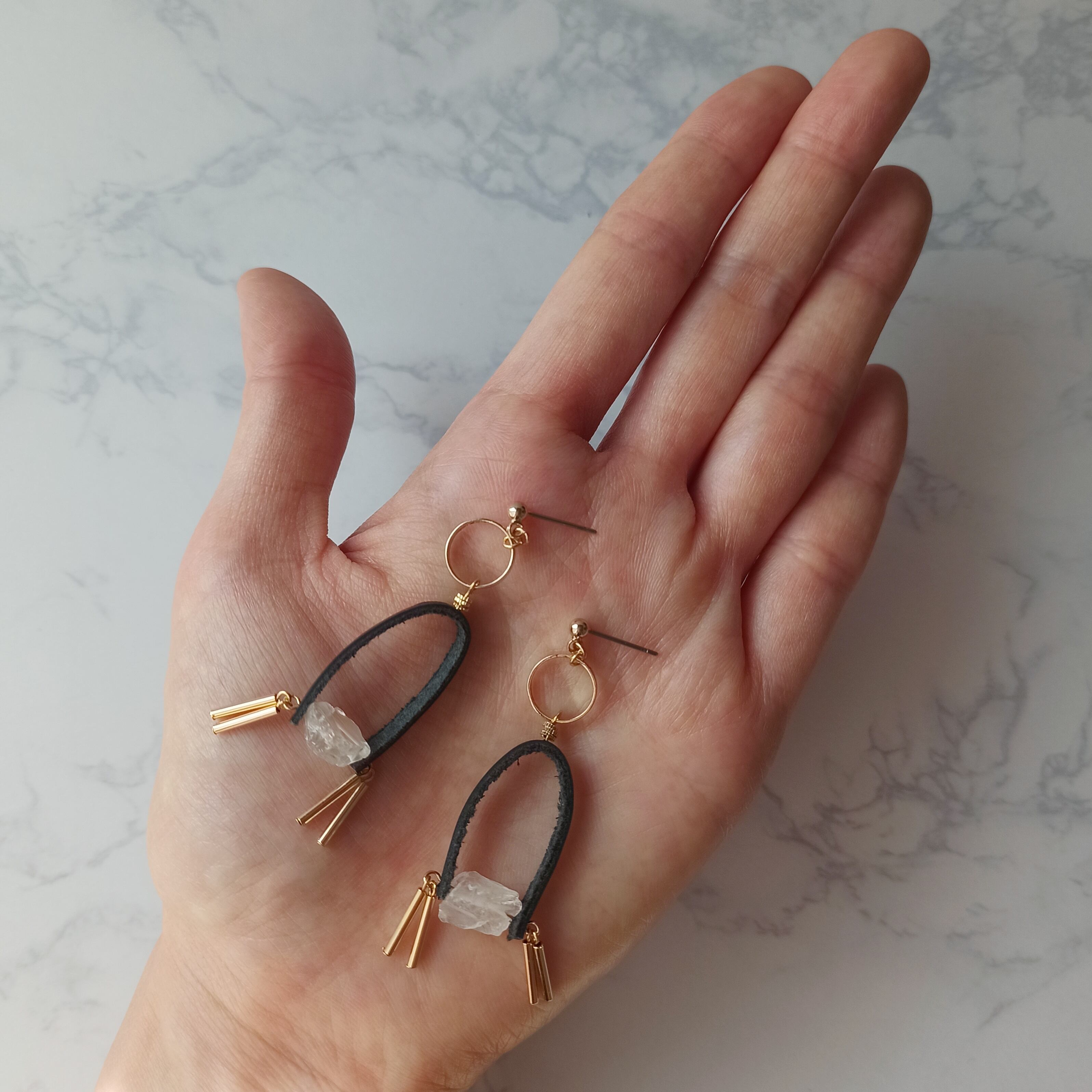 素材感を楽しめるアートピースのようなピアスに仕立てました。