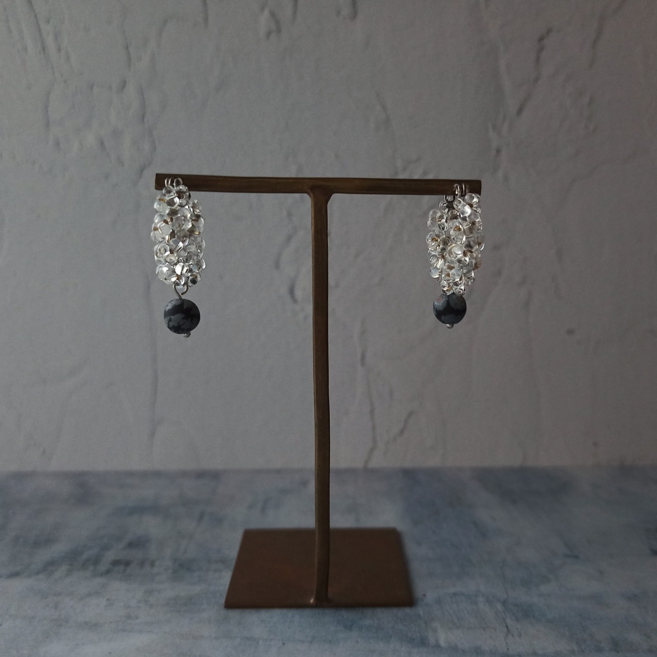 揺れる丸い天然石はスノーフレークオブシディアンという石で
