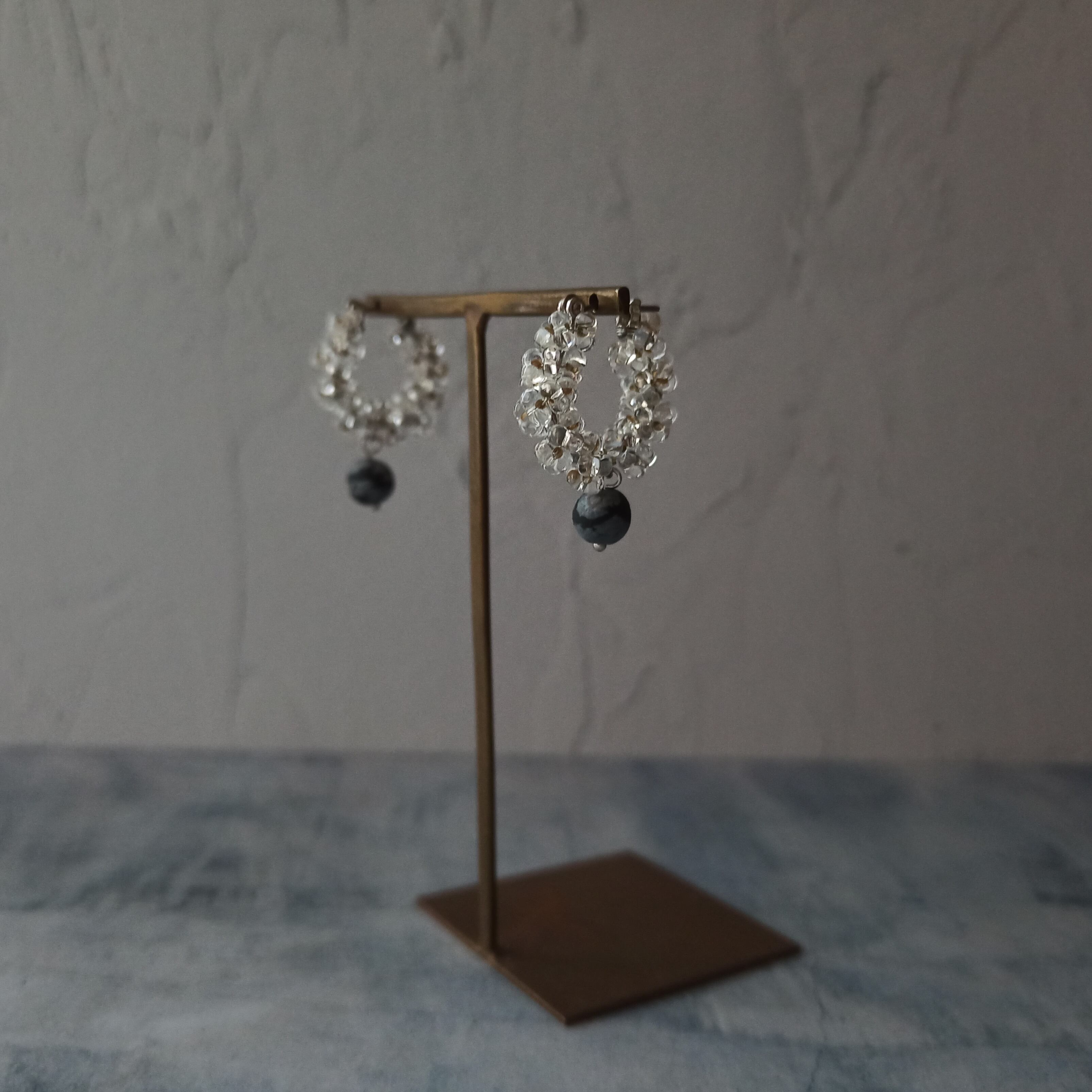 一つとして同じ模様のない天然石を組み合わせたフープ状のピアスです。