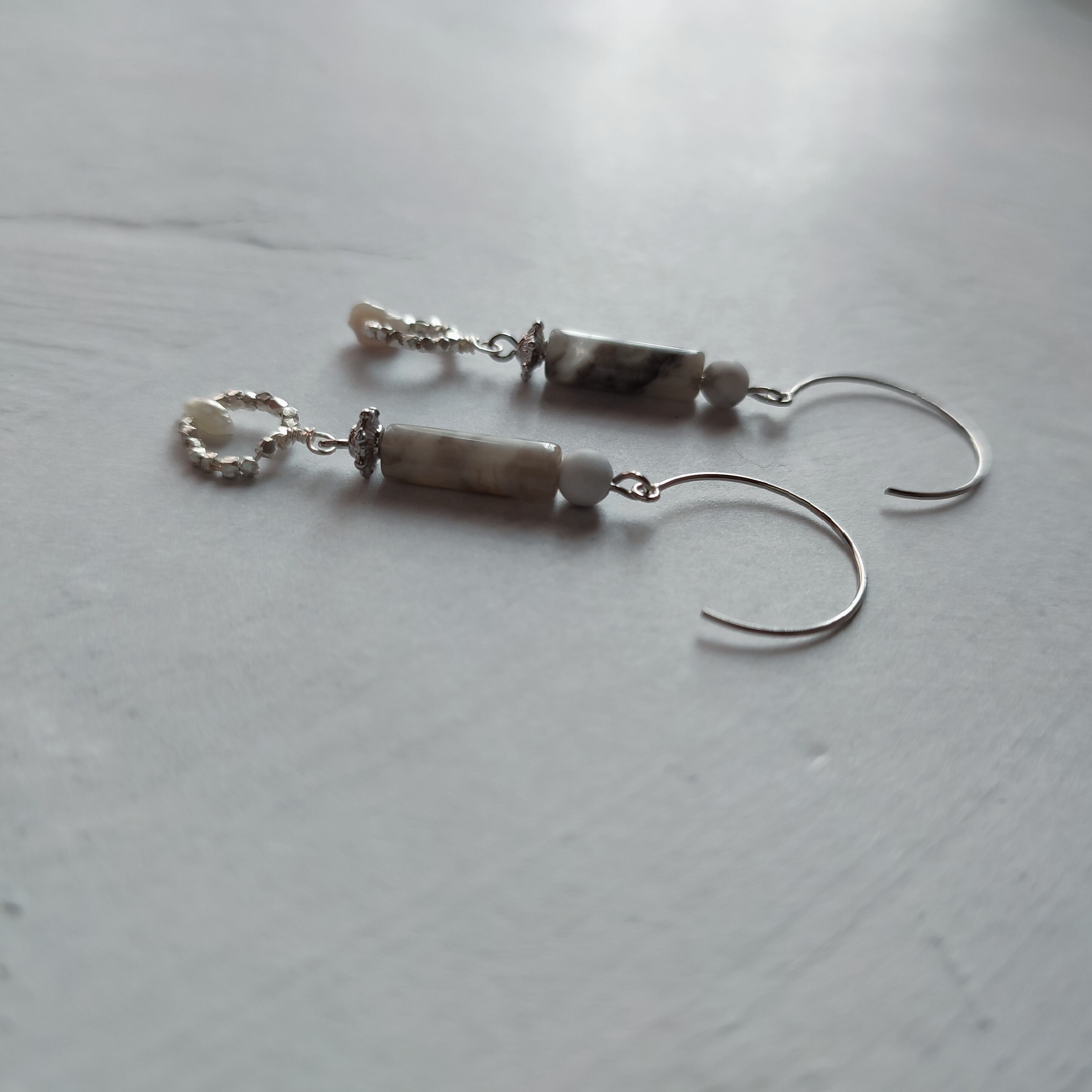 様々な色が混ざり合うクレイジーレースアゲートを使用したピアスです。