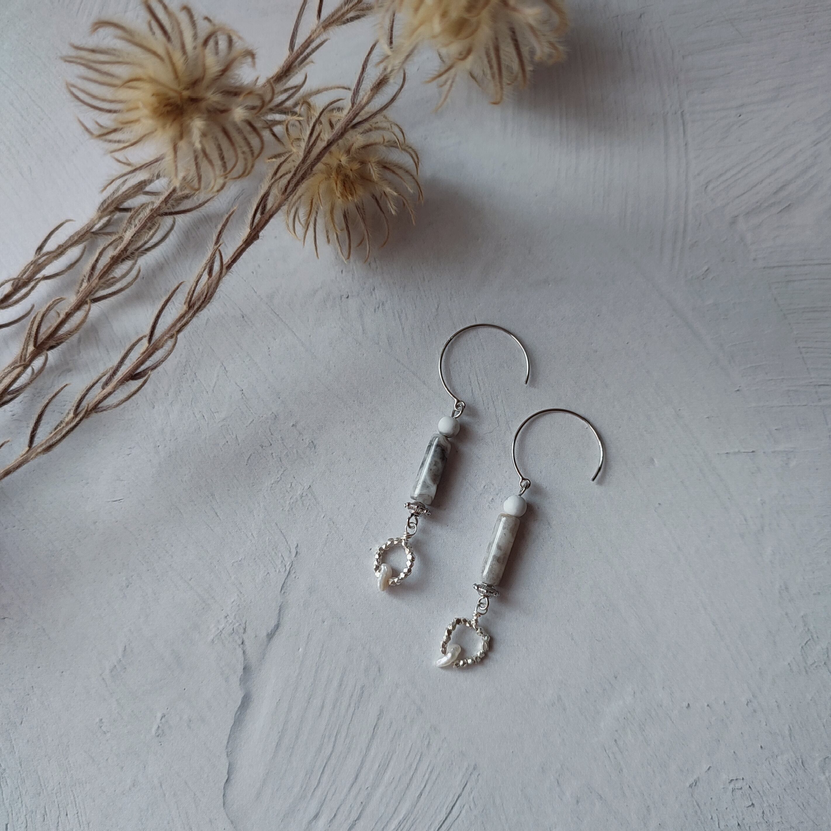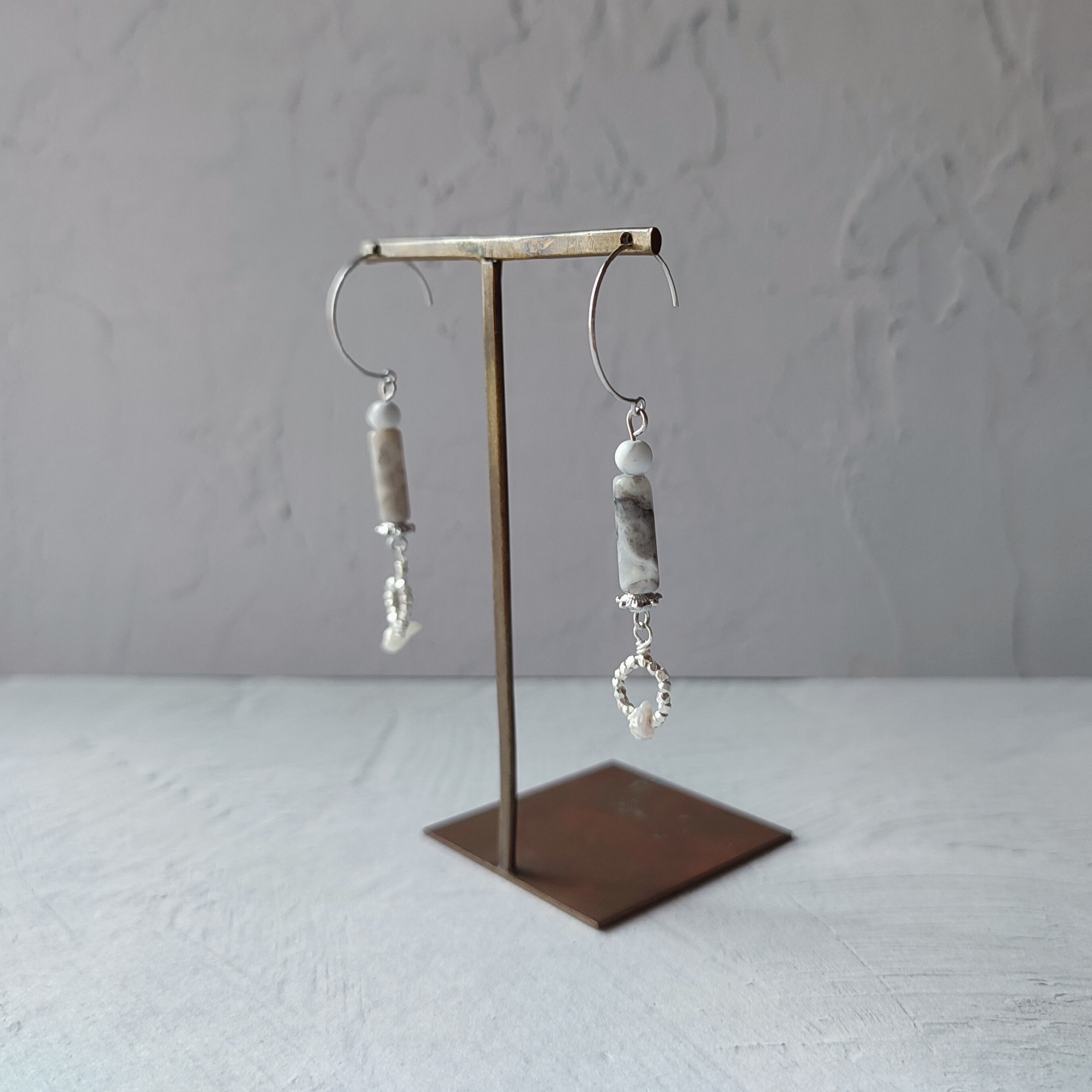 カレンシルバーと、歪な形の淡水パールを繋げています。