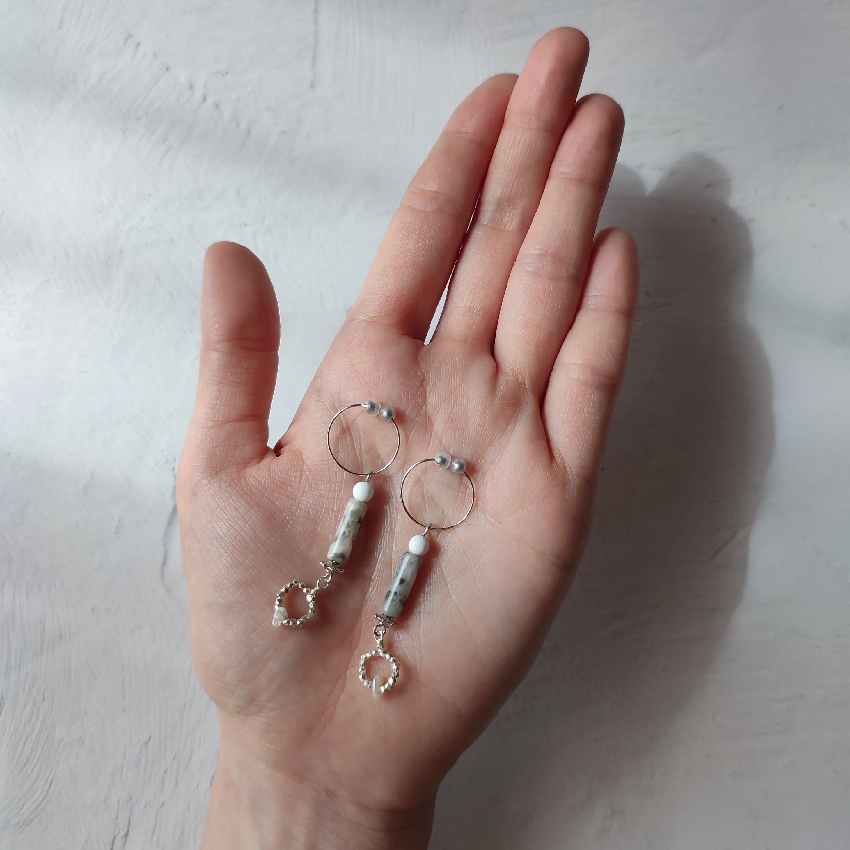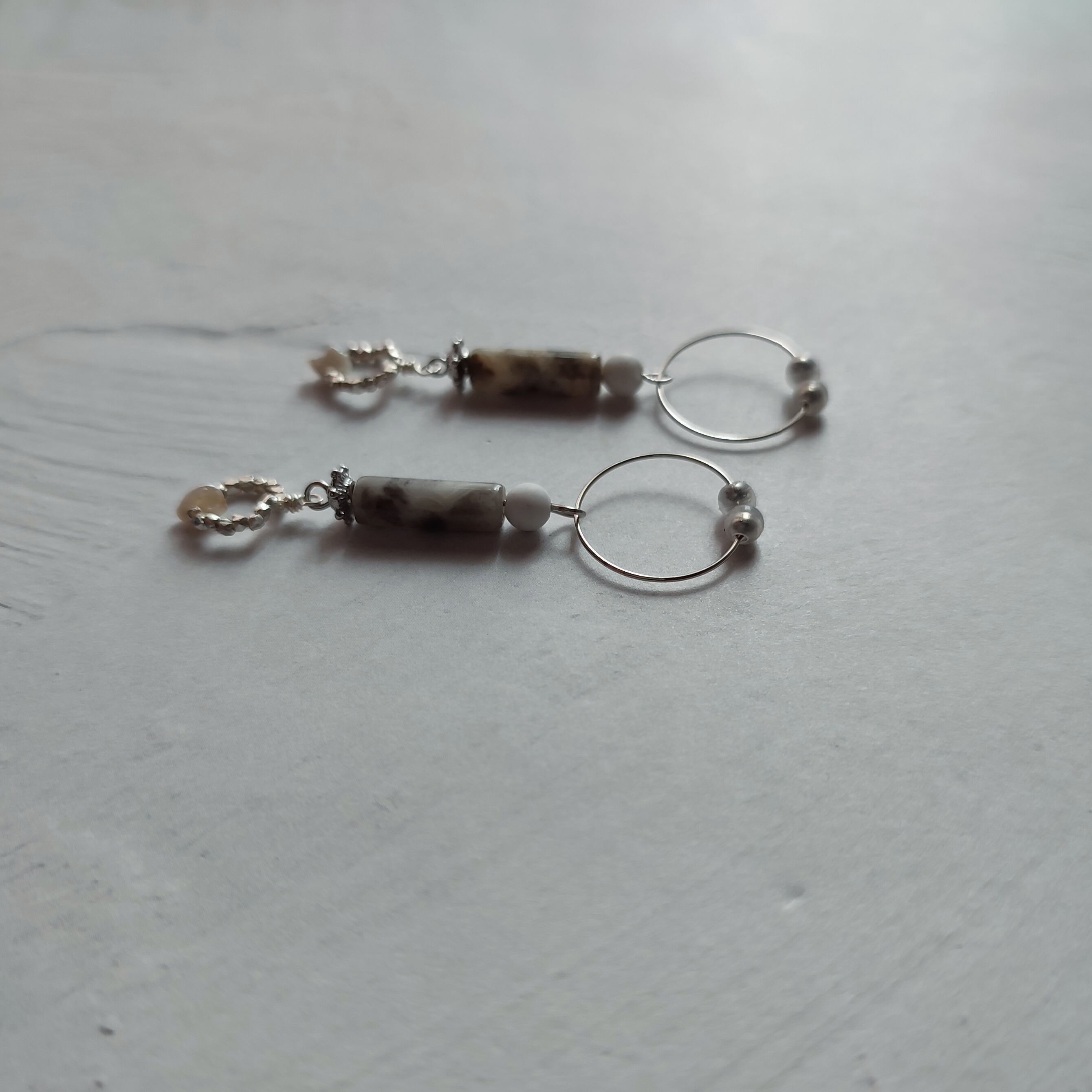 様々な色が混ざり合うクレイジーレースアゲートを使用したイヤリングです。