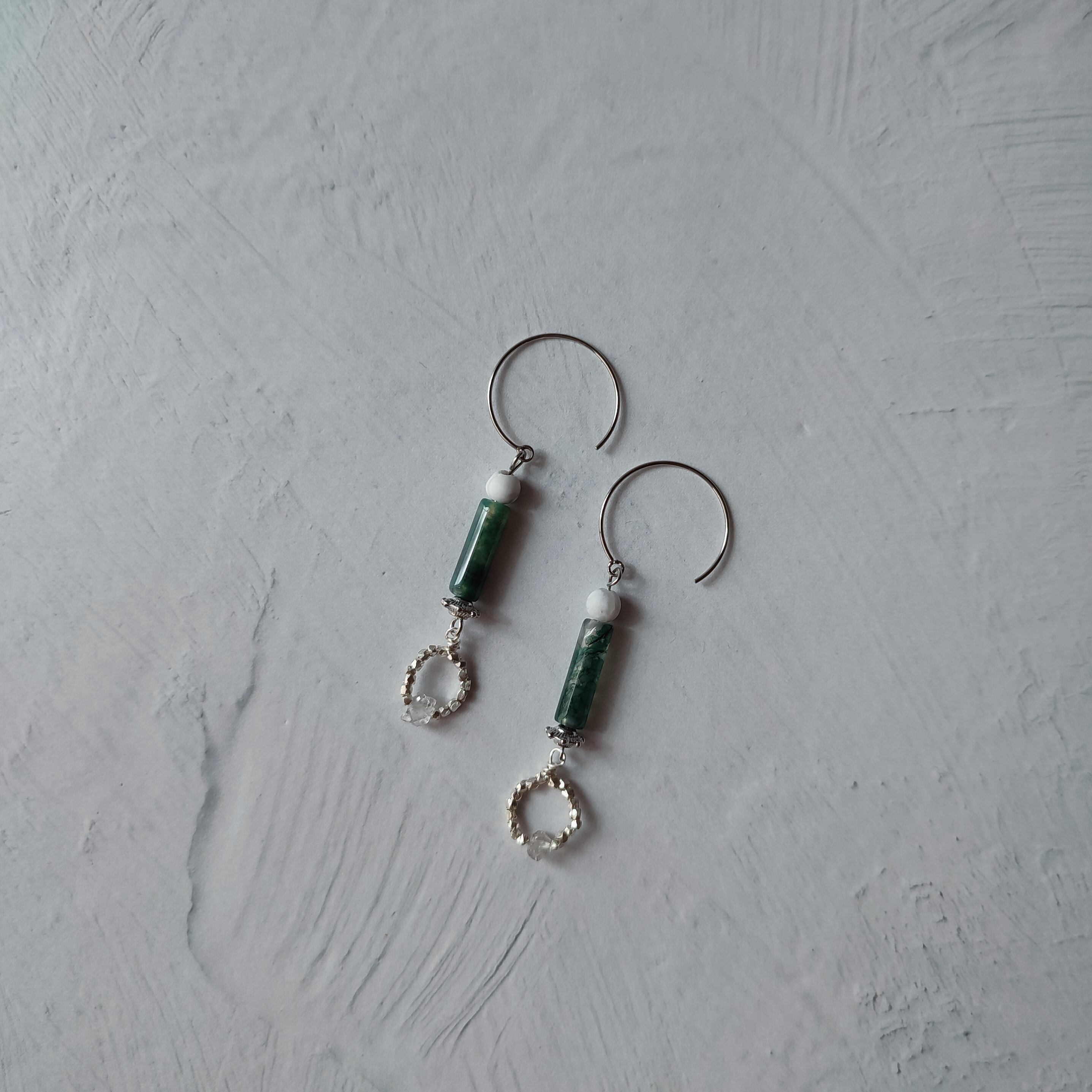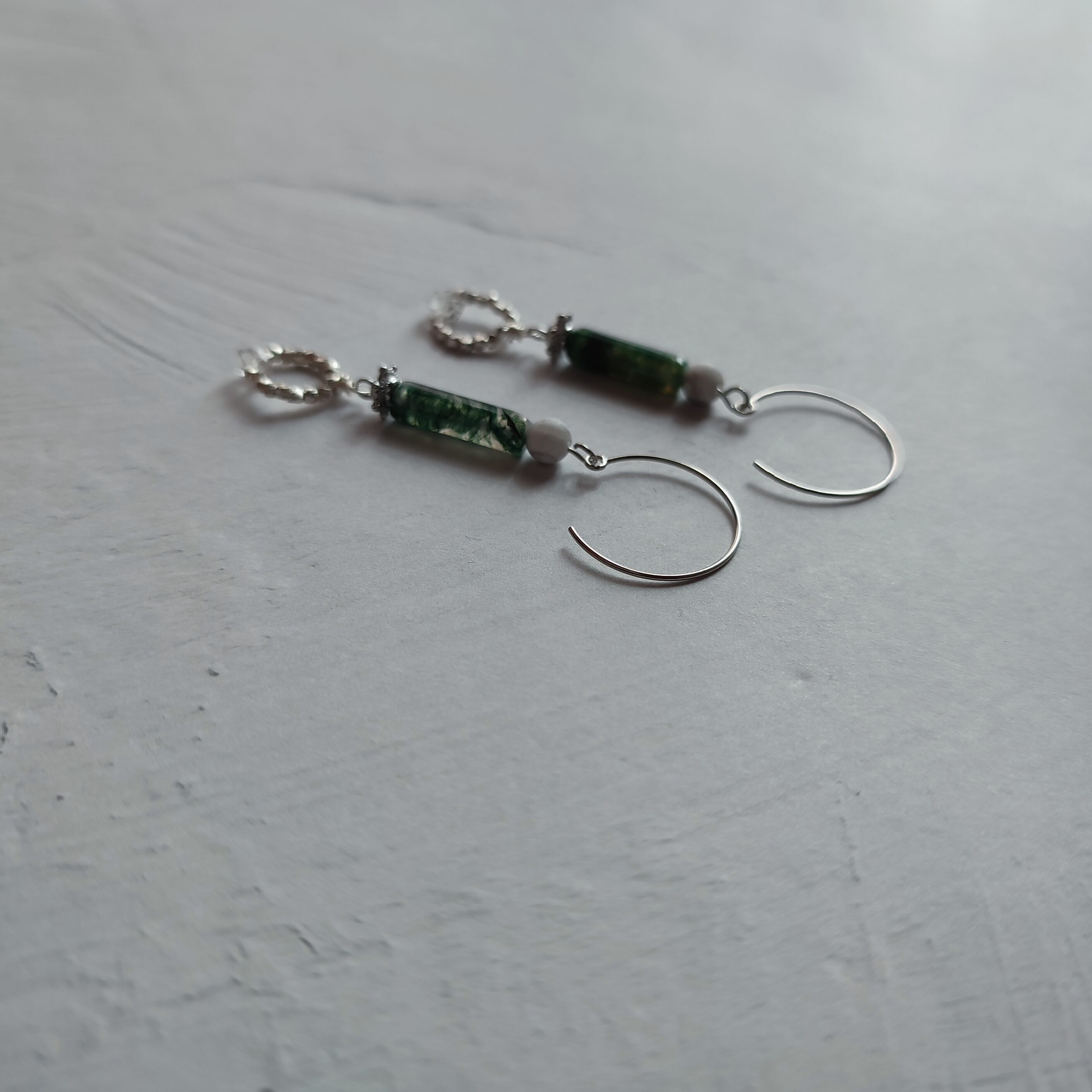 深緑の植物を思わせるモスアゲートを使用したピアスです。