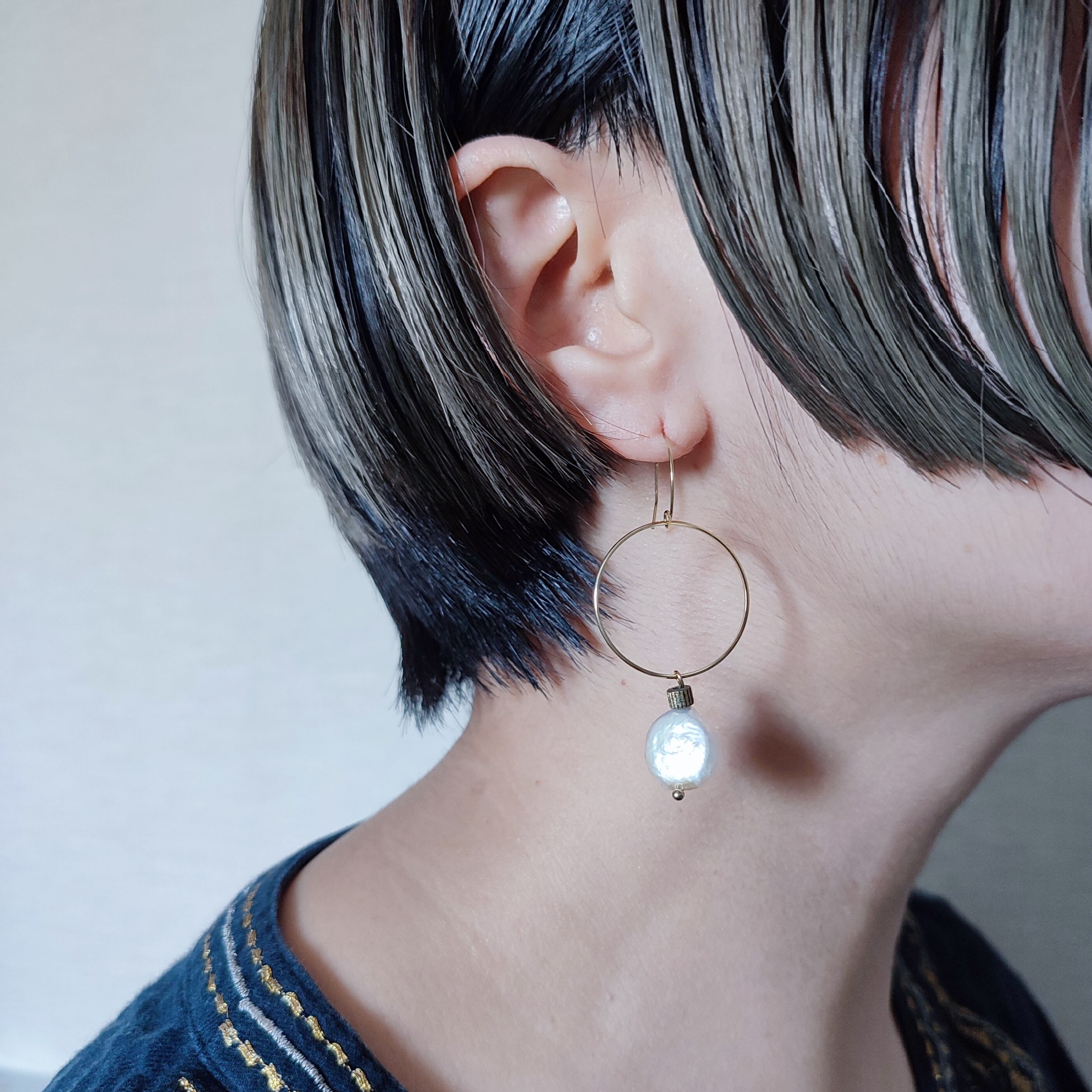 しんと冷えた夜空の白い月を思わせる淡水パールを揺らしました。