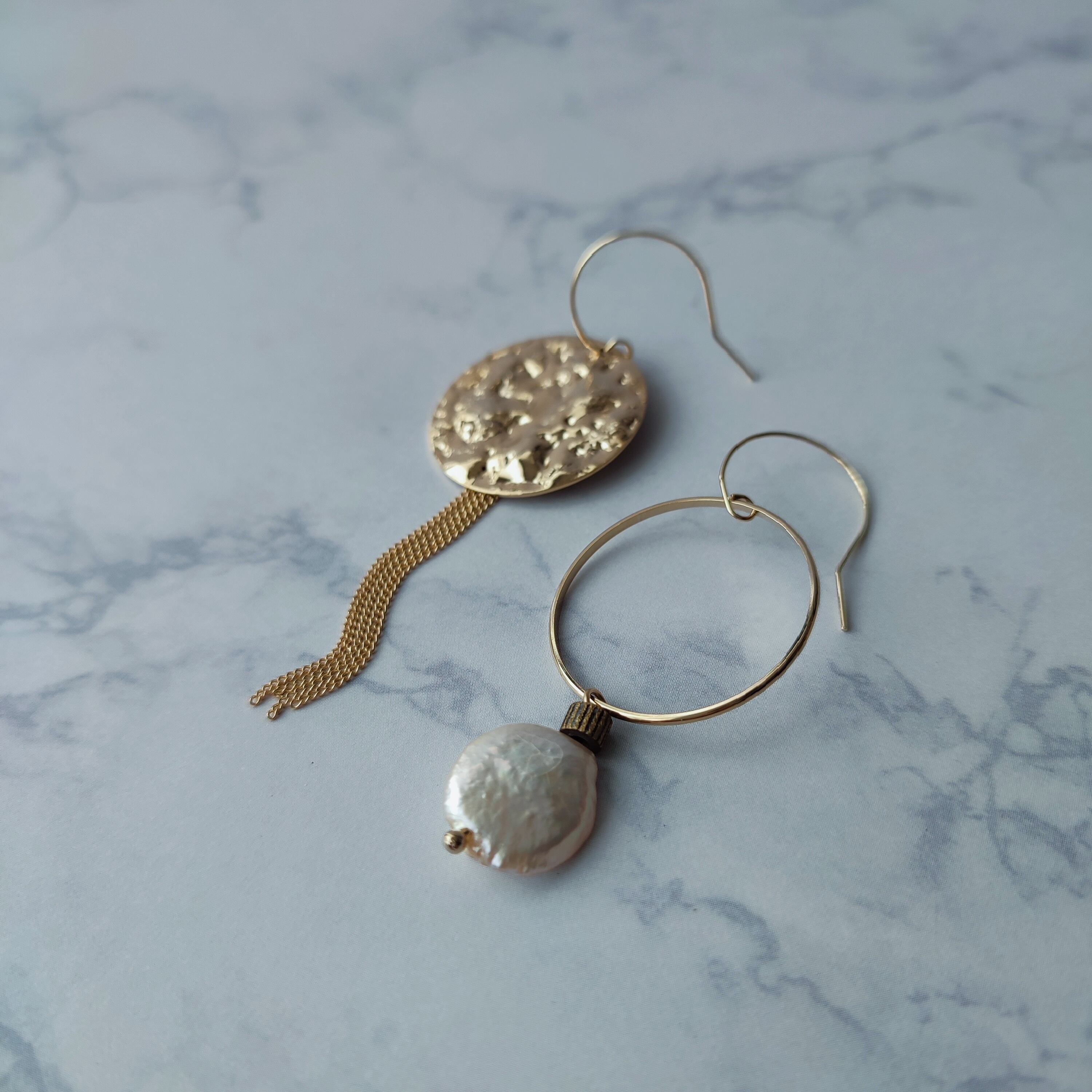 見え隠れする2つの月をイメージして製作したアシンメトリーなピアスです。