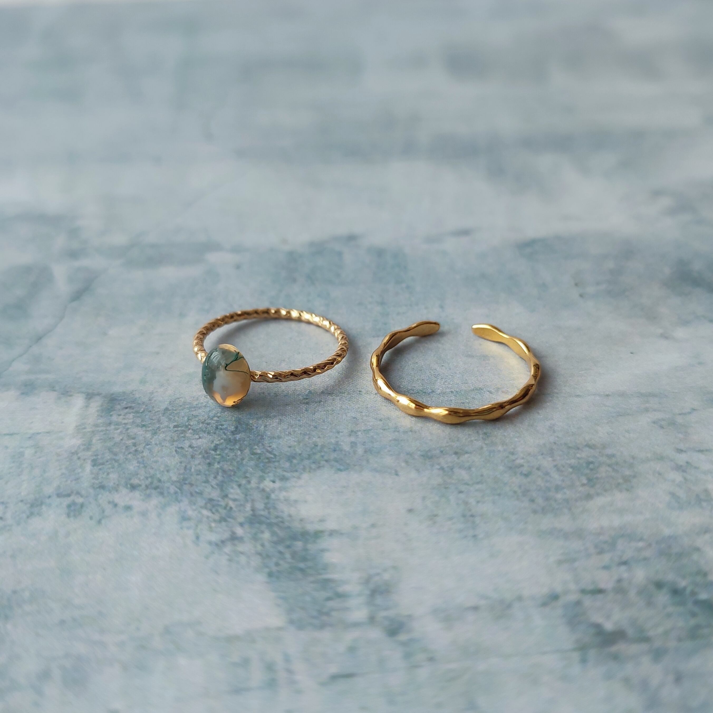 緑芽吹く景色を思わせるモスアゲートをメインにしたリングと