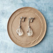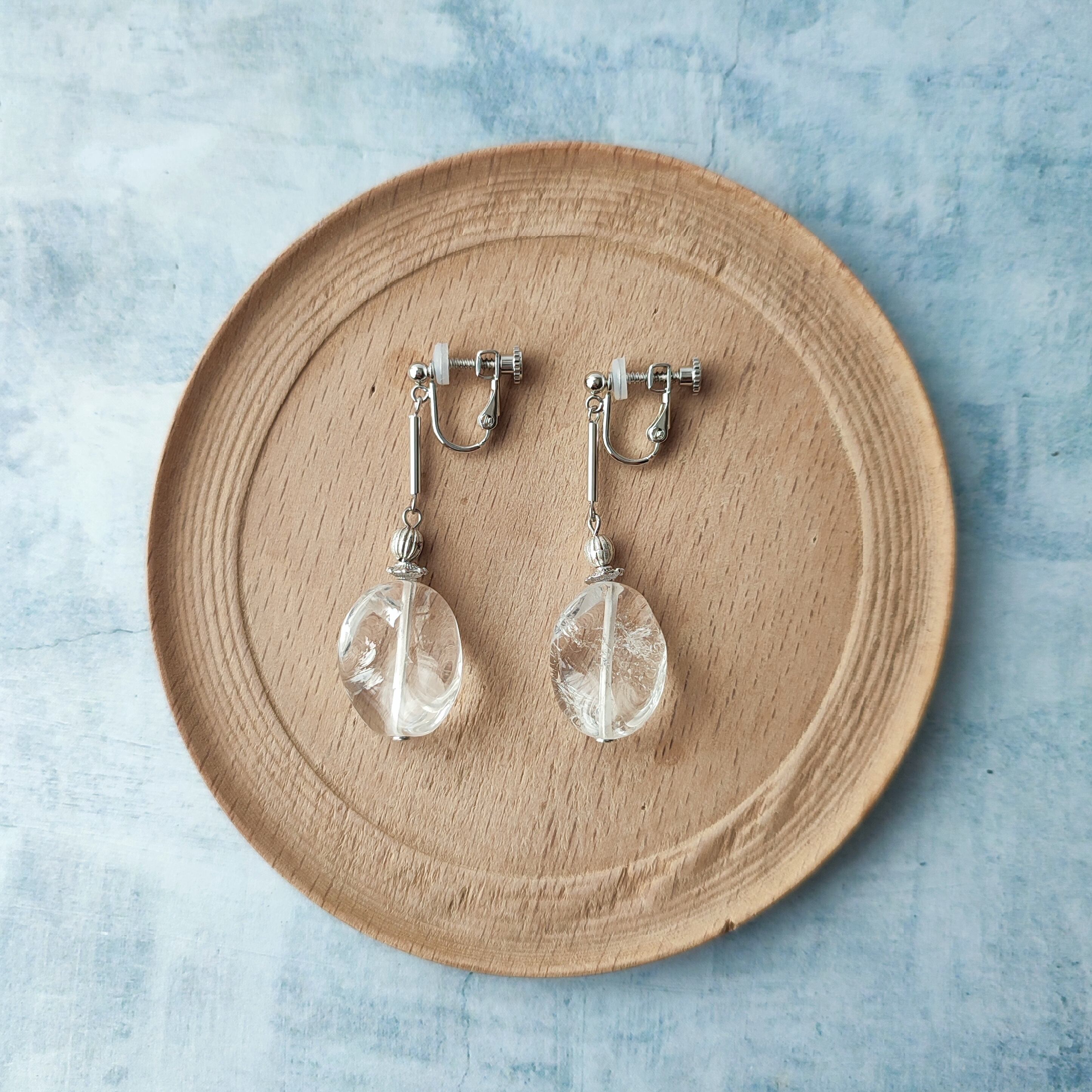 光を透かす透明な水晶を使い、小ぶりながら存在感のあるイヤリングを製作しました。